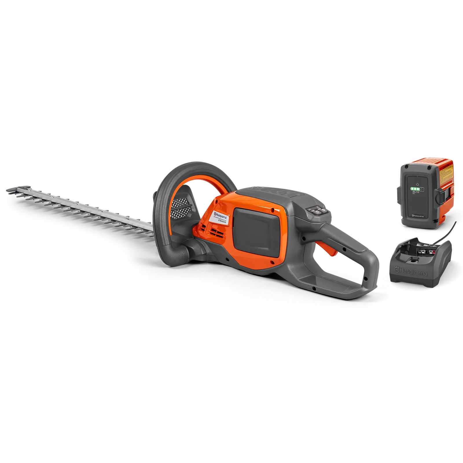 Die Husqvarna 215iHD45 ist eine leistungsstarke, zweiseitige Akku-Heckenschere, ideal für jede Heckenart – selbst dickere Äste sind kein Problem. Dank des ergonomischen Handgriffs und der optimalen Balance gelingt der Wechsel zwischen Ober- und Seitenflächen mühelos.Die digitale Benutzeroberfläche mit robusten Hardtop-Tasten macht die Bedienung besonders einfach. Zudem ist die Heckenschere mit allen Husqvarna 36-V-Akkus kompatibel. Für eine längere Laufzeit kann der savE™-Modus aktiviert werden, wenn weniger Leistung ausreicht. Perfekt für effizientes und komfortables Arbeiten im Garten!Lieferung inkl. Akku und Ladegerät.Technische Daten:Geräusche und VibrationenSchalldruckpegel am Ohr der Bedienperson: 79 dB(A)Garantierter Schallleistungspegel, LWA: 90 dB(A)Vibrationswert (ahv, eq), hinterer Handgriff: 1,7 m/s²Äquivalenter Vibrationswert (ahv, eq) vorderer / hinterer Handgriff: 2,1 m/s²Ausstattung und AbmessungenGewicht ohne Akku: 3,2 kgMesserlänge: 45 cmMesserabstand: 33 mmProduktabmessungen LxBxH: 102 x 25 x 18 cmKapazitätGrößter empfohlener Zweig-Durchmesser: 25 mmMessergeschwindigkeit: 3.000 Schnitte/min.Motor und AkkuMotor: BLDC (bürstenlos)Akku-Typ: Li-IonAkku-Leistung: 36 V