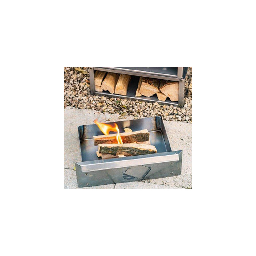 Kohleschublade mit V2A-Edelstahlblende für Smoki Räucherofen. Der Grundkasten wird aus dem vollen Blech gekantet, damit er sich unter Hitze nicht so stark verzieht. Das Material besteht aus Schwarzblech und ist ca. 2 mm dick, auf die Vorderseite ist ein Frontblech mit Lufteinlass genietet. Die Blende ist aus V2A-Edelstahl. Gewicht 1,5 kg.