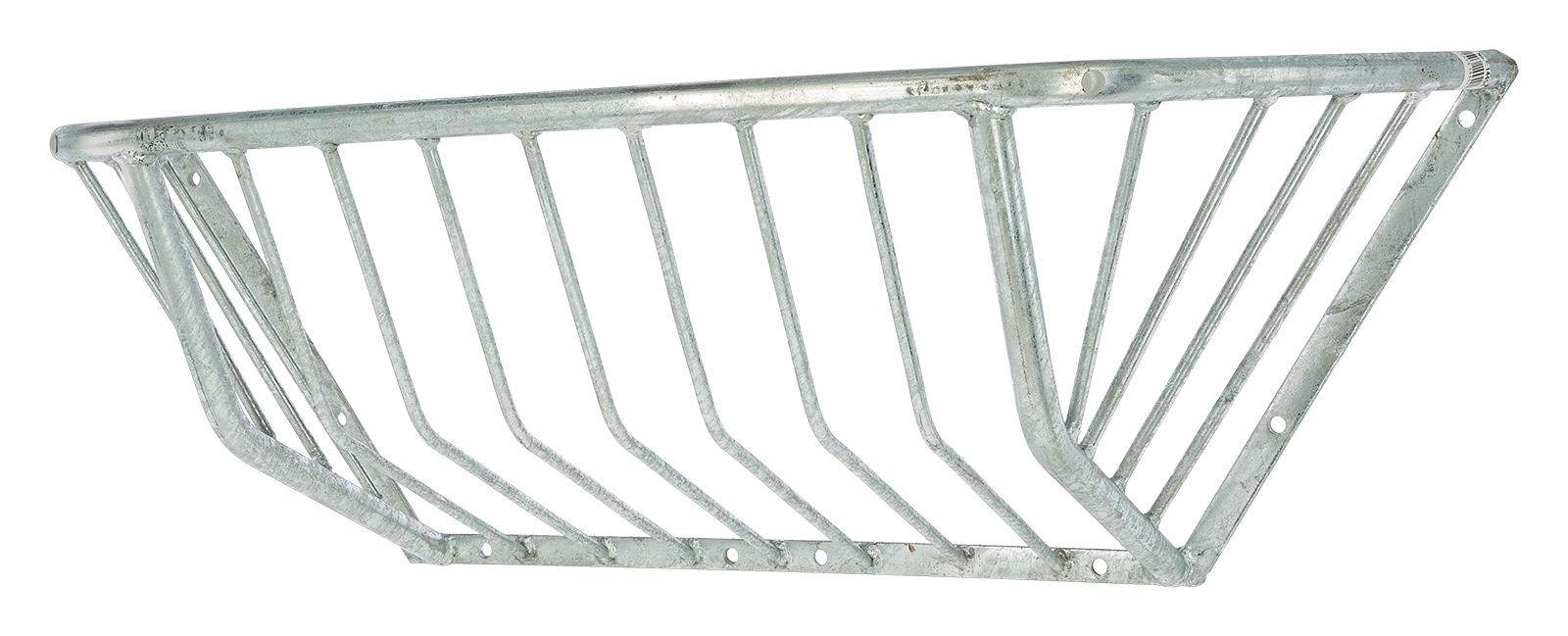 Verzinkte Futterraufe zur Rückwandmontage in Gruppen-Iglus. Stababstand: 75 mm. Maße: 113 x 41 x 38 cm.