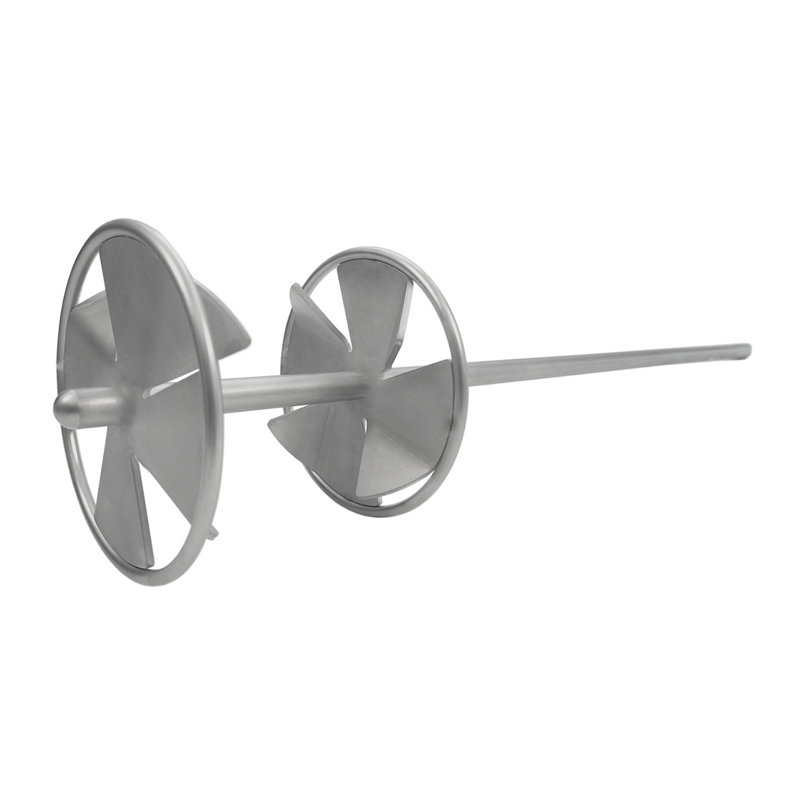 Honig-Rührstab aus Edelstahl, beidseitig verschweißt, mit zwei festen und gegenläufigen entgrateten Rührflügeln. Um einen Behälterabrieb bestmöglich zu vermeiden sind die Rundflügel zusätzlich durch Edelstahlringe geschützt ebenso ist das Rührstabende abgerundet!