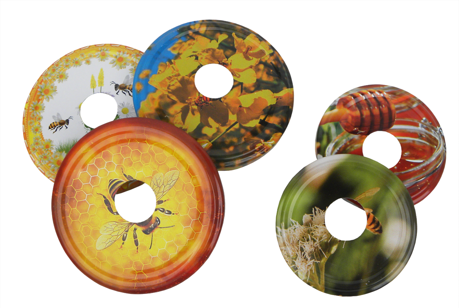 Dieser Spender ist speziell für flüssigen Honig konzipiert. Damitgehört das Problem von klebrigen Löffeln und Honiggläsern der Vergangenheit an!Der Honigdosierer aus Kunststoff verfügt über eine Pumpe mit einemverschraubbaren Metalldeckel. Er ist das ideale Hilfsmittel, um Honig präzisezu dosieren und sollte in keiner Küche fehlen. Dank der Pumpe tropft der Honignicht und bleibt genau dort, wo er hingehört. Der Dosierer lässt sich einfachauf klassische Honiggläser schrauben. Das Saugrohr kann an die Höhe des Glases angepasst werden, sodass esimmer nur etwa 1 cm über dem Boden endet. So lässt sich Honig problemlos ineine Tasse Tee oder Kaffee oder auf Brot und Oblaten dosieren. Ideal auch fürHonigverkostungen.Sie erhalten ein fünfteiliges Set: Spenderdrücker mit aufschraubbarer Pumpe,einer Verlängerung und zwei Deckeln in unterschiedlichen Größen Ø66 und Ø82 cm.Bitte beachten: Die Deckelmotive sind nicht wählbar und werden zufällig ausgewählt!