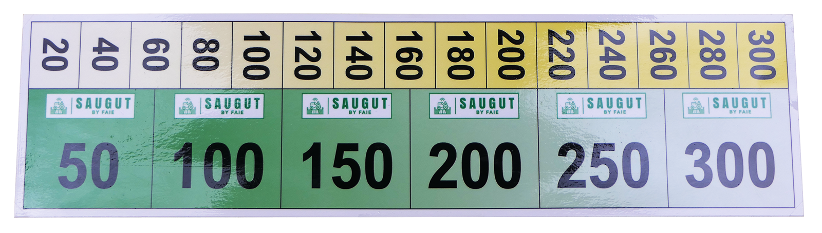 Hubanzeige für hydraulische Oberlenker. Die Skala hat eine Länge von 300mm und ist eine selbstklebende Folie.