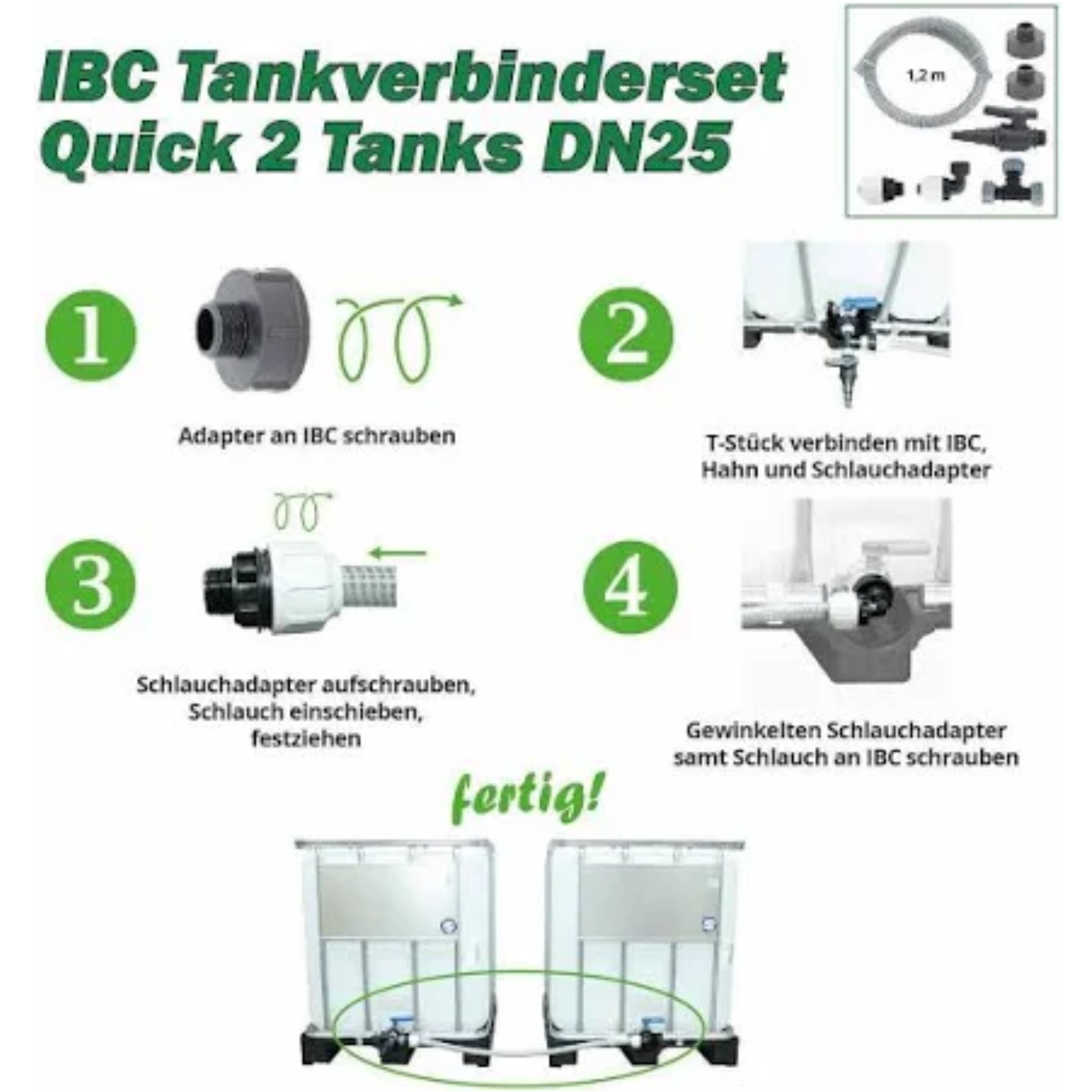 Nutzen Sie dieses praktische Verbindungsset und das passende Zubehör, um mehrere IBC untereinander zu verbinden.