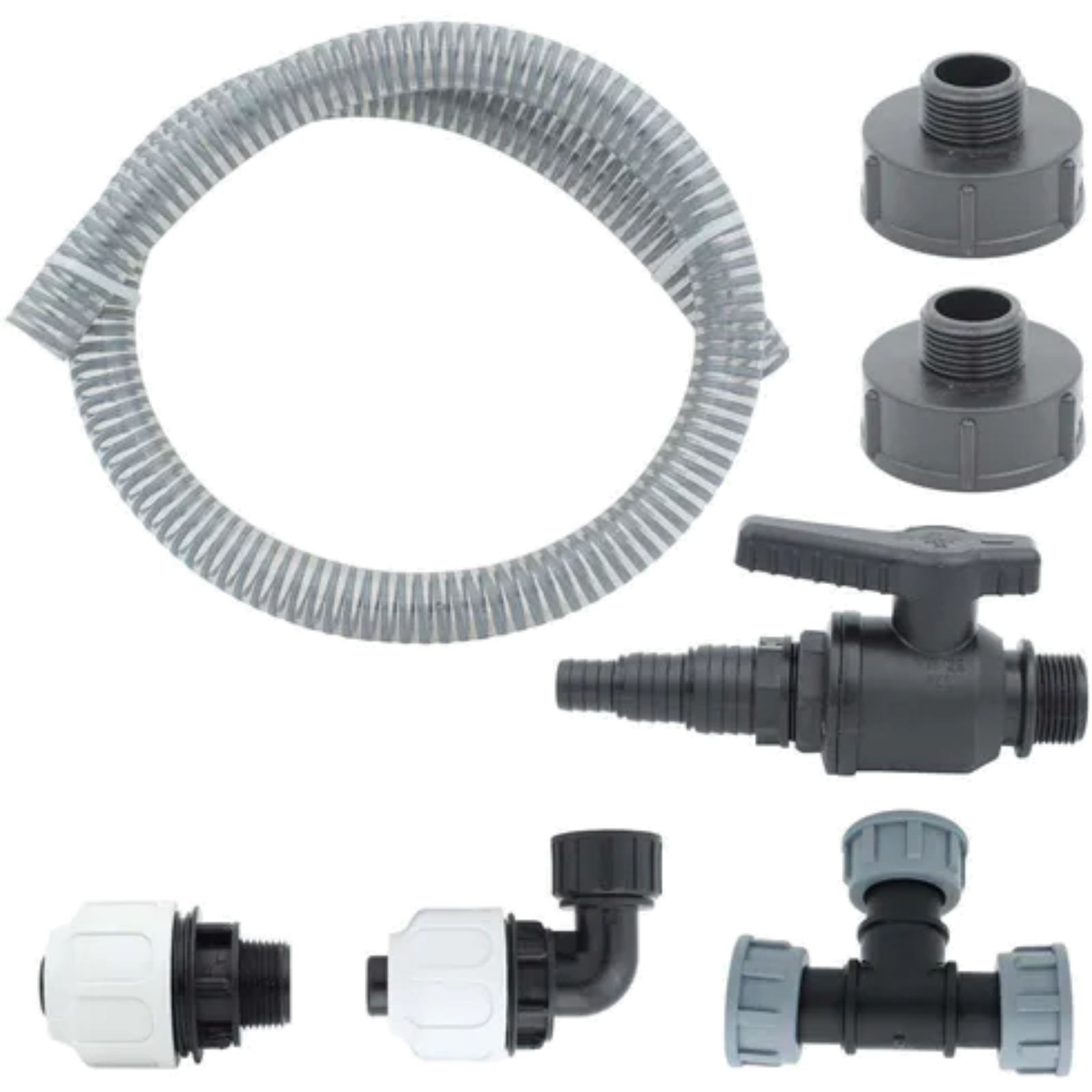 • je 1 Schlauchverbinder 1 Zoll gerade und 1 Zoll abgewinkelt (90°)