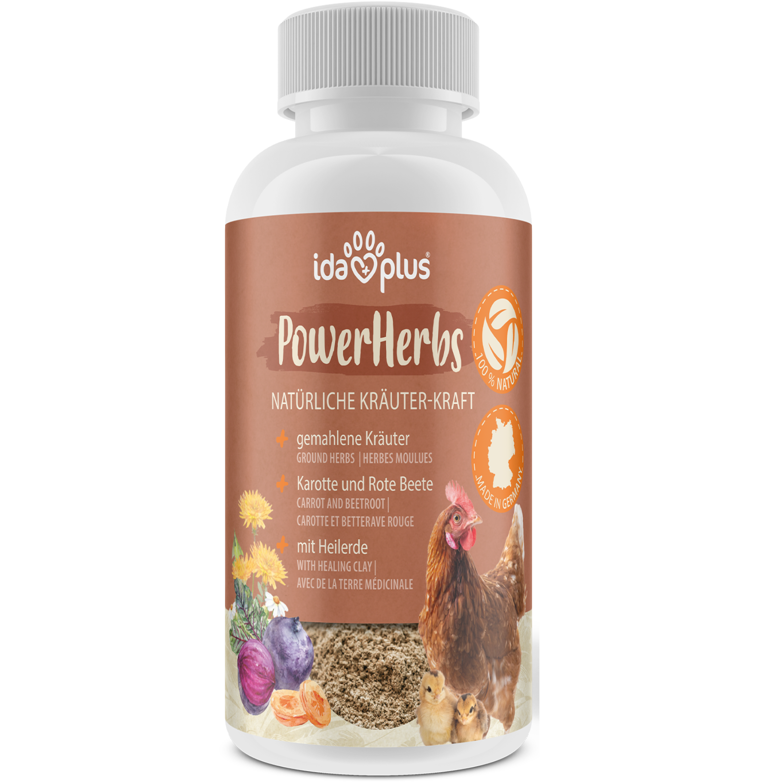 - aus gemahlenen Kräutern, Heilerde, Karotten und Roter Beete