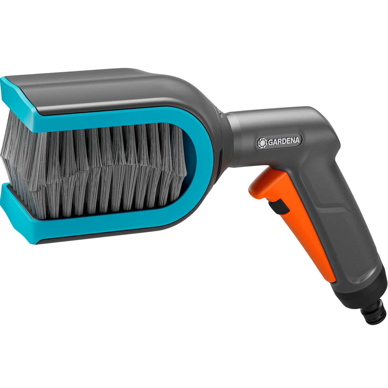 Reinigen und Abwaschen in einen Arbeitsgang. Der Bürstenkopf ist beidseitig um 90° drehbar- daher in jeder Position anwendbar.
