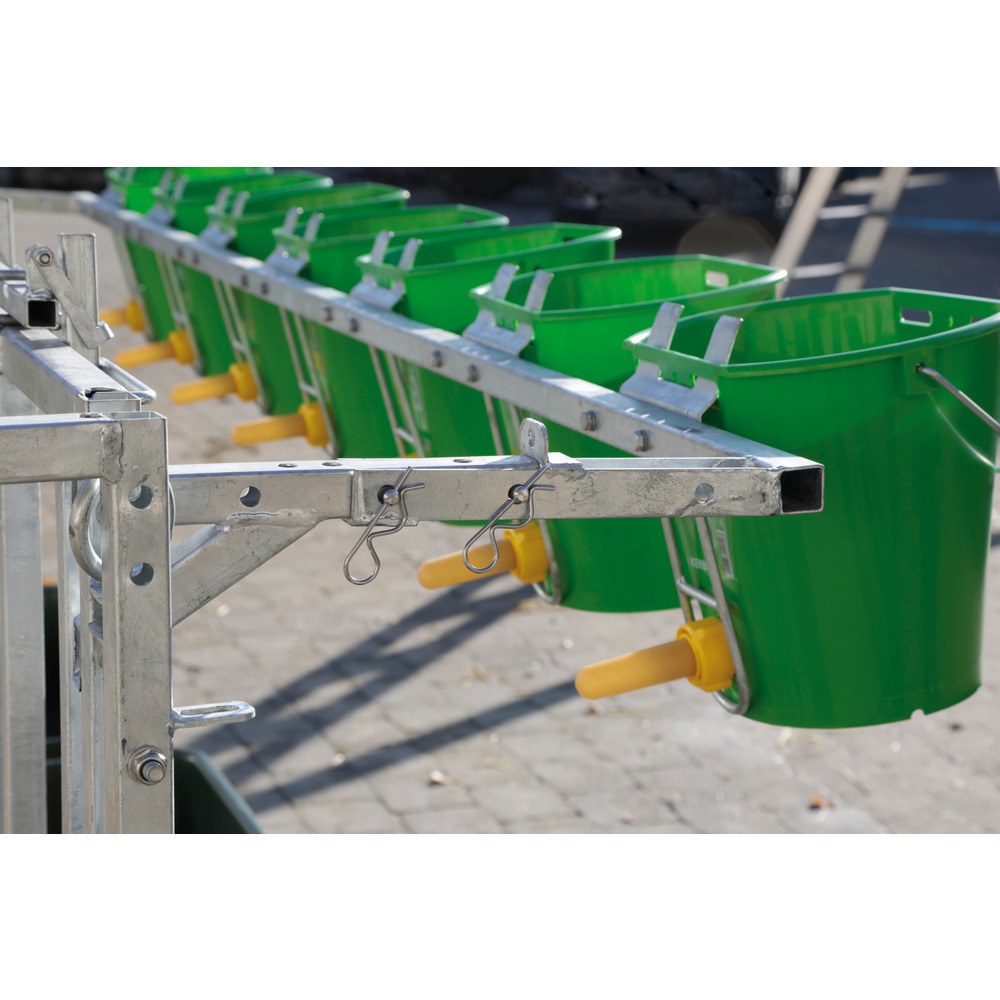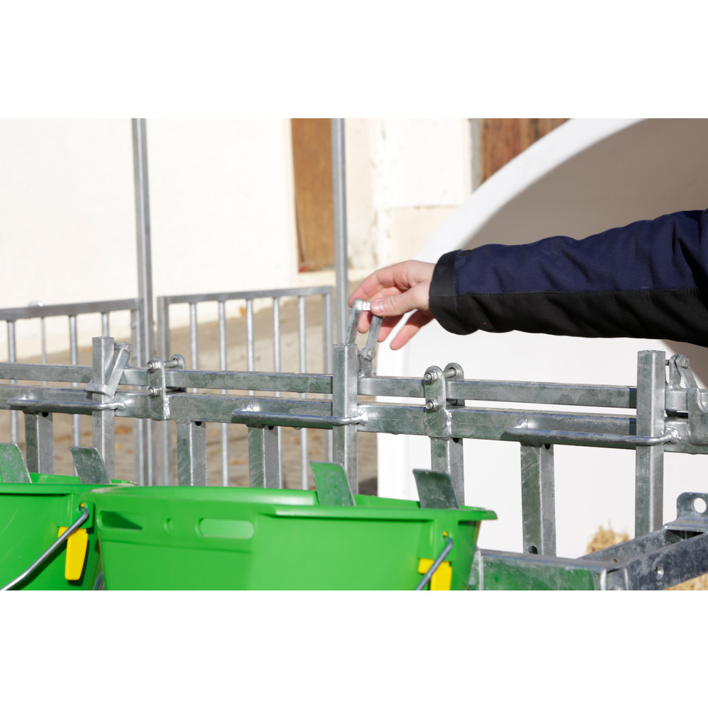 Mit verzinktem Raufeneinsatz für die kombinierte Fütterung von Heu und Kraftfutter. Ideal für die Umstellung von Milch- auf Trockenfütterung. Farbe grün. Fassungsvermögen 11,5 Liter. 330 x 512 x 270 mm (BxTxH)>geeignet für alle Einzelkälberhütten oder Kälberboxenam Zaun innen einhängbarBefüllung bequem von außenDeckel schützt Inhalt vor Regenstabiler Behälter aus Kunststoff
