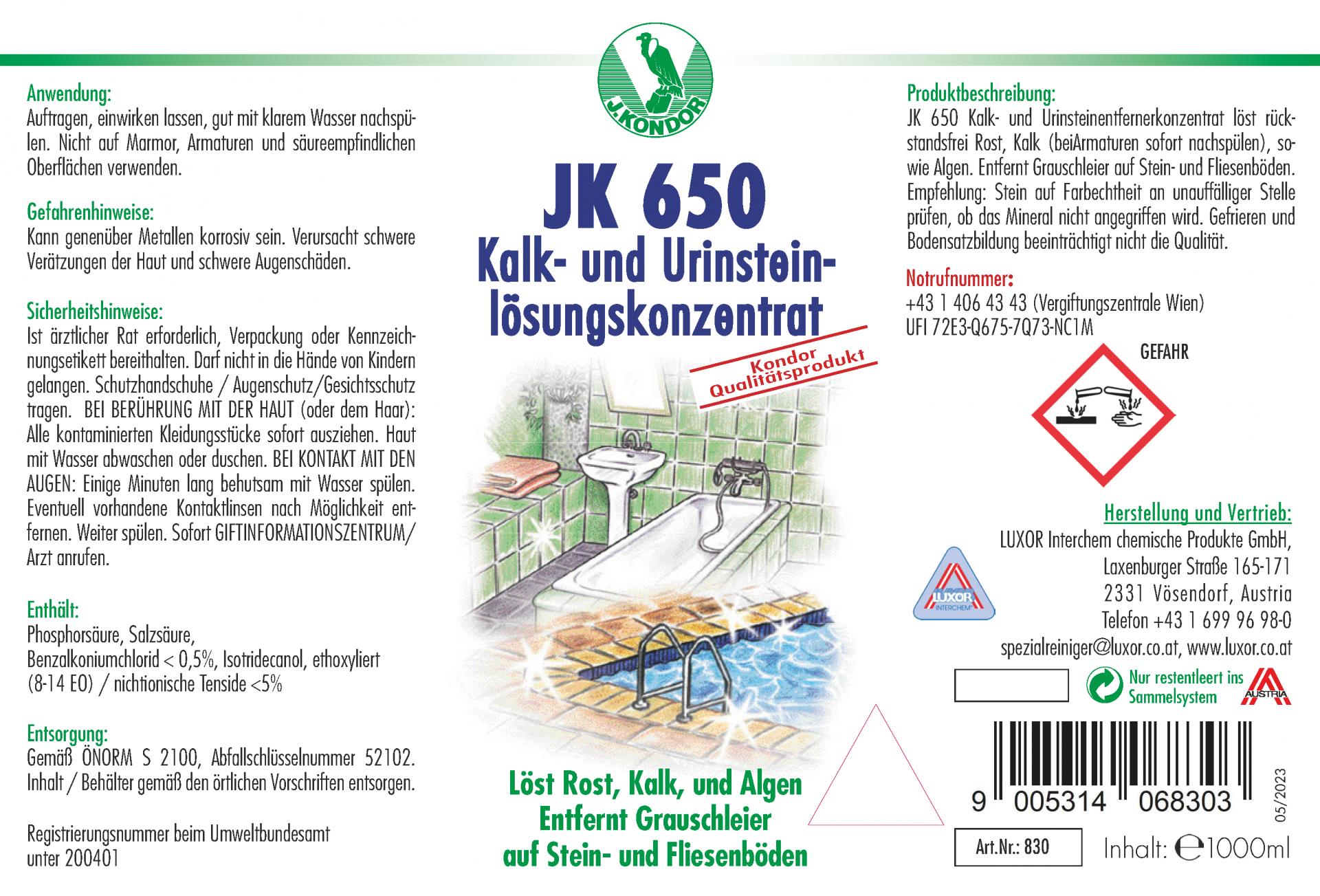 Produktinformationen "Kalk und Urinsteinlöser JK650 Konzentrat"