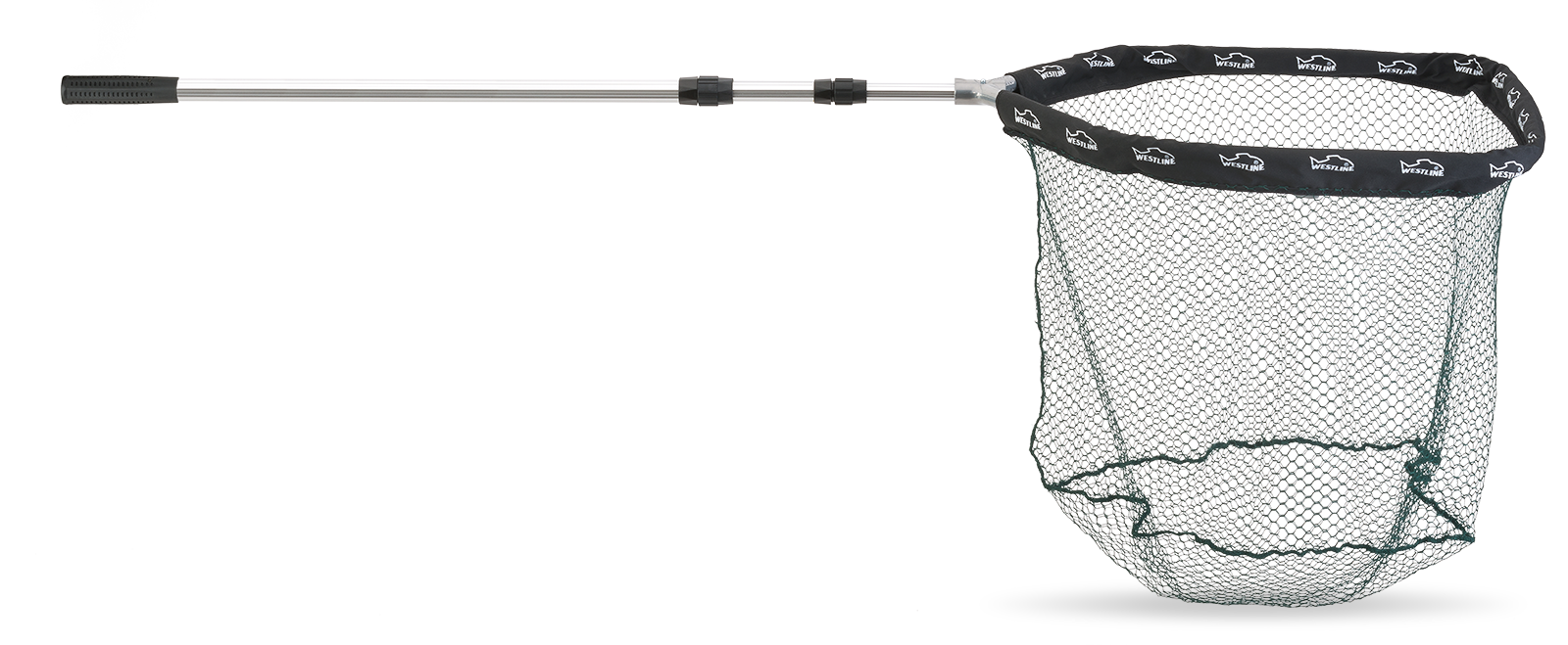 Hochwertiger, hoch belastbarer Großfischkescher mit einer Gesamtlänge von 290 cm, grünes Netz mit 16 mm Maschenweite und einer Netztiefe von 50 cm, der Kescherkopf ist abnehmbar. Transportlänge 100 cm.