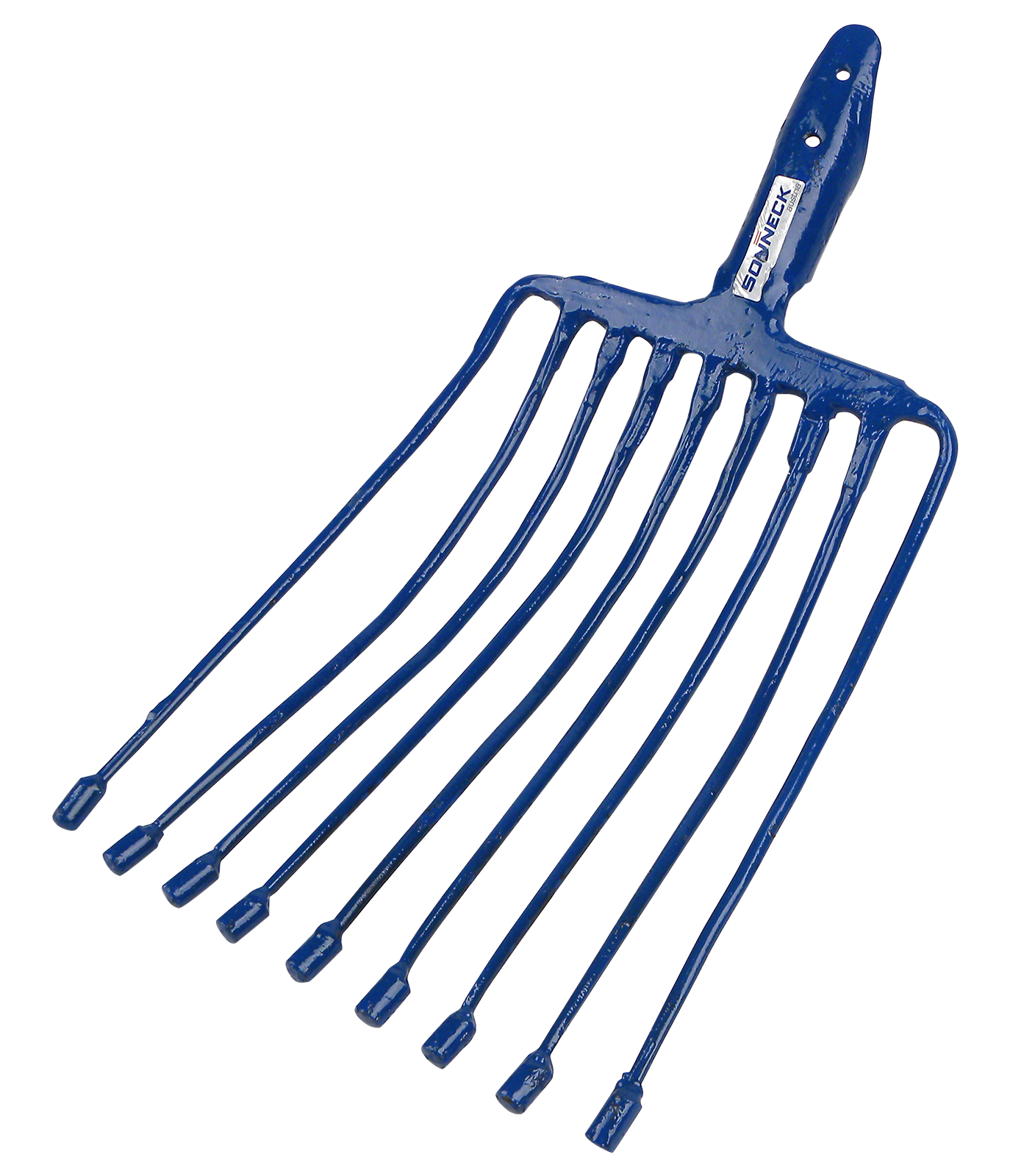 Robuste Gabel mit 9 Zinken und stumpfer Spitze, für Kartoffel, Rüben und dgl. mit Federtülle. Maße ca: 34x27 cm.