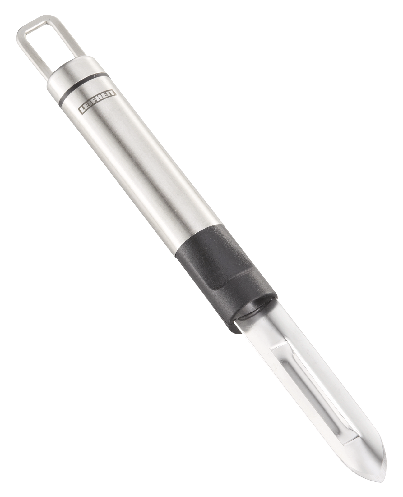 Hochwertige Verbindung aus schwarzem Kunststoff und Edelstahl machen den Gemüseschäler zum Design-Highlight in der Küche