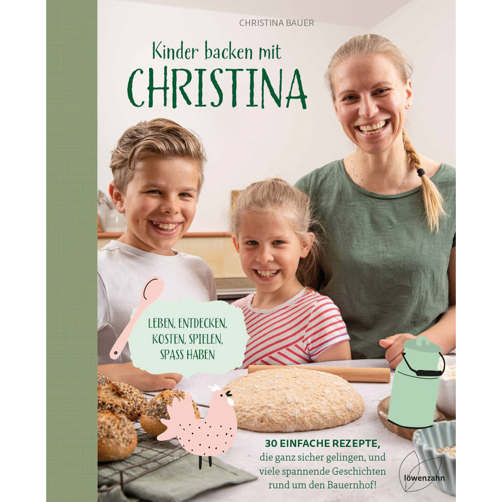 „Eier aufschlagen, Mehl auf Nasenspitzen verteilen und ganz fest kneten und rühren: Das macht einfach Spaß! Noch dazu, wenn das Ergebnis ein frecher Laugenigel ist oder ein Osterhase – der im Nu im Bauch landet, weil er nicht nur zum Anbeißen aussieht, sondern auch so schmeckt. Darüber hinaus erzählt Christina von ihrem Leben am Bauernhof und was es eigentlich mit dem Mehl und den flauschigen Schafen auf sich hat. Ein absolutes Lese- und Nachbackhighlight für große und kleine Bäckerinnen!“ 184 Seiten.