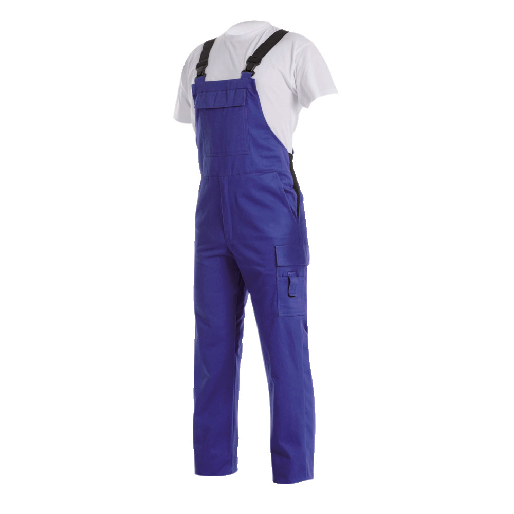 Aus 100% Baumwolle mit verstellbaren Trägern, seitlichem Knopfverschluss, 1 Latz- und 2 Seitentaschen, Gummizug. In den Größen 104 - 176 lieferbar.blau