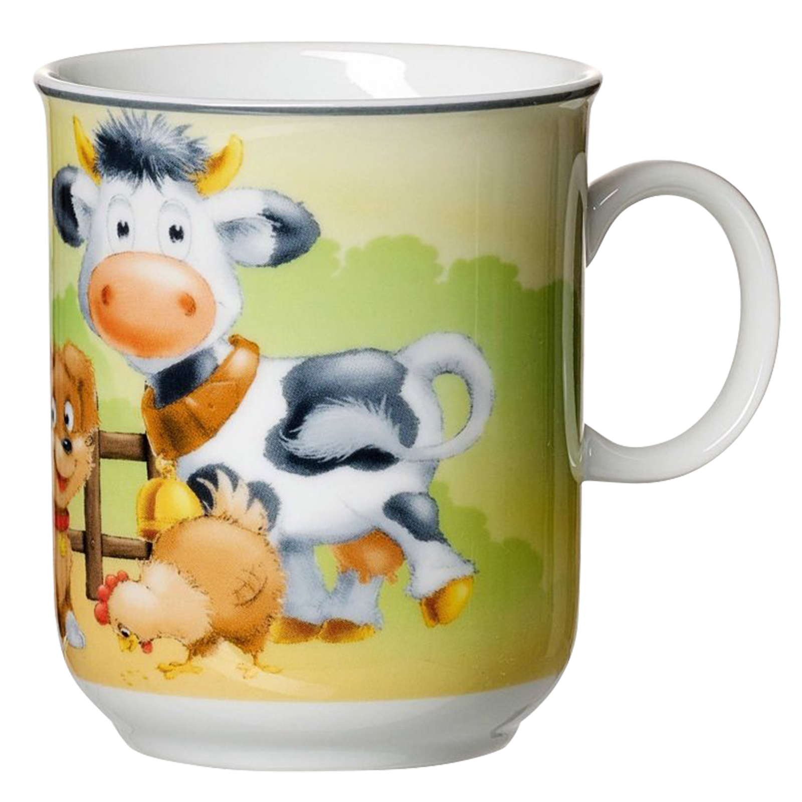 Piep, muh, wau und mäh! Auf dieser Tasse ist immer was los!Schau mal, wer dich hier jeden Tag begrüßt: die lustige Kuh, das freche Hündchen und die neugierige Henne. Mit dieser Tasse schmeckt dein Kakao, Saft oder Tee gleich doppelt so gut. Viel Spaß beim Entdecken deiner tierischen Freunde!