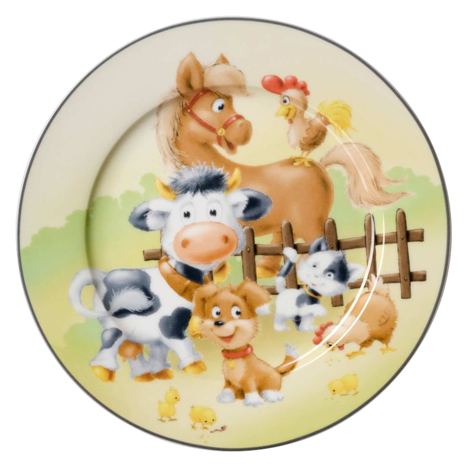Piep, muh, wau und mäh! Auf diesem Teller ist immer was los!Schau mal, wer dich hier jeden Tag begrüßt: die lustige Kuh, das freche Hündchen und die neugierige Katze. Mit diesem Teller schmeckt dein Kakao, Saft oder Tee gleich doppelt so gut. Viel Spaß beim Entdecken deiner tierischen Freunde!