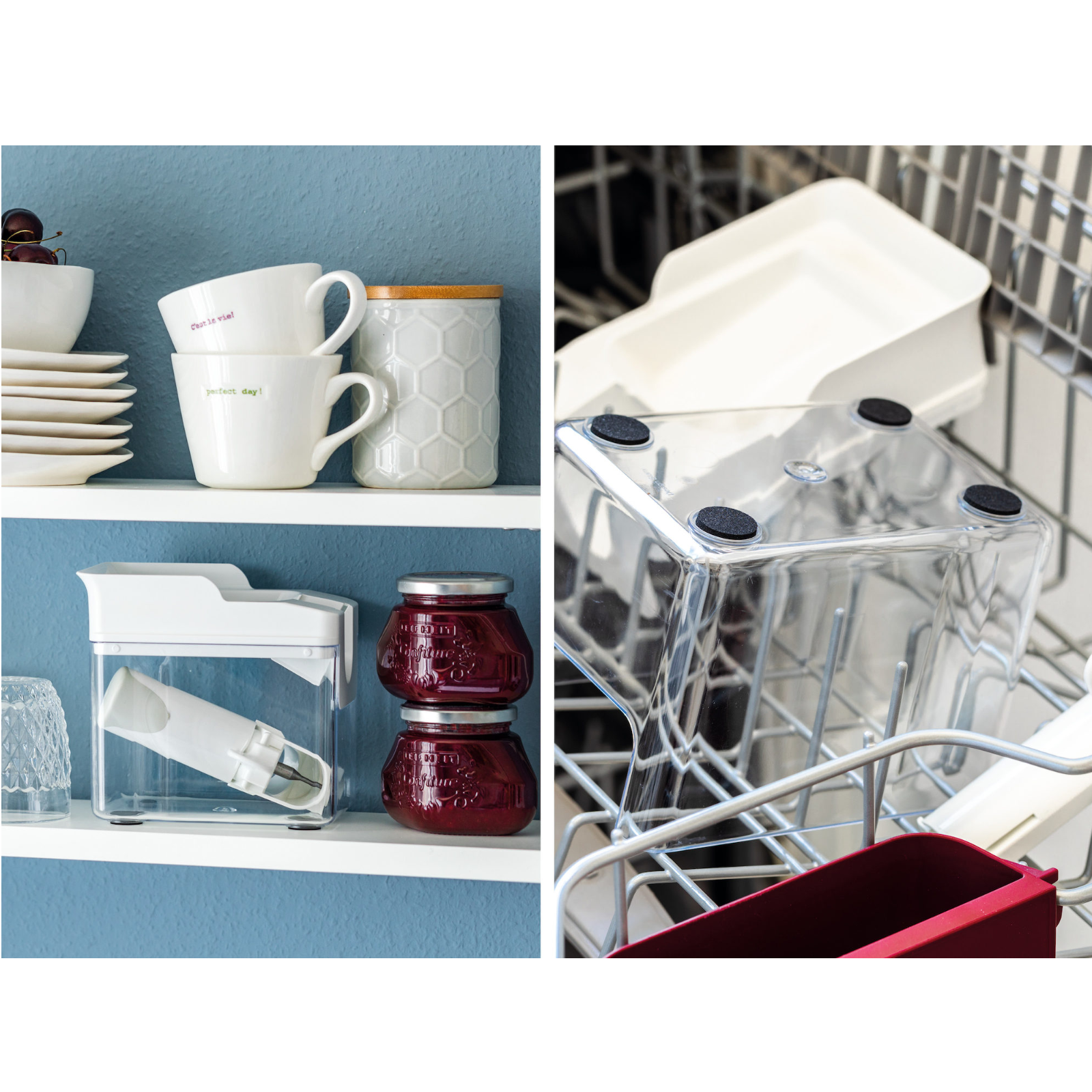 Einfach zu verstauen wie eine Schüssel: einfach Griff demontieren und in der Auffangschale aufbewahren