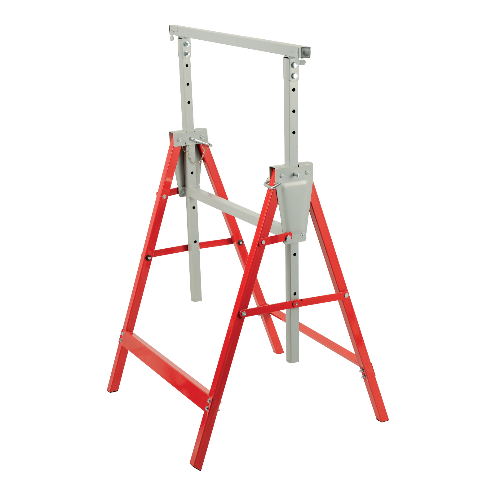 Dieser höhenverstellbare Klappbock aus massiven, lackiertem Vierkantstahlrohr ist sehr platzsparend zusammenklappbar.Der integrierte Sicherheitsverschluss verhindert ein unbeabsichtigtes Einfahren des Auflagebalkens.68 cm breiter Auflagebalken mit ausklappbarer Abrutschsicherung. Gewicht ca. 6,35 kg.