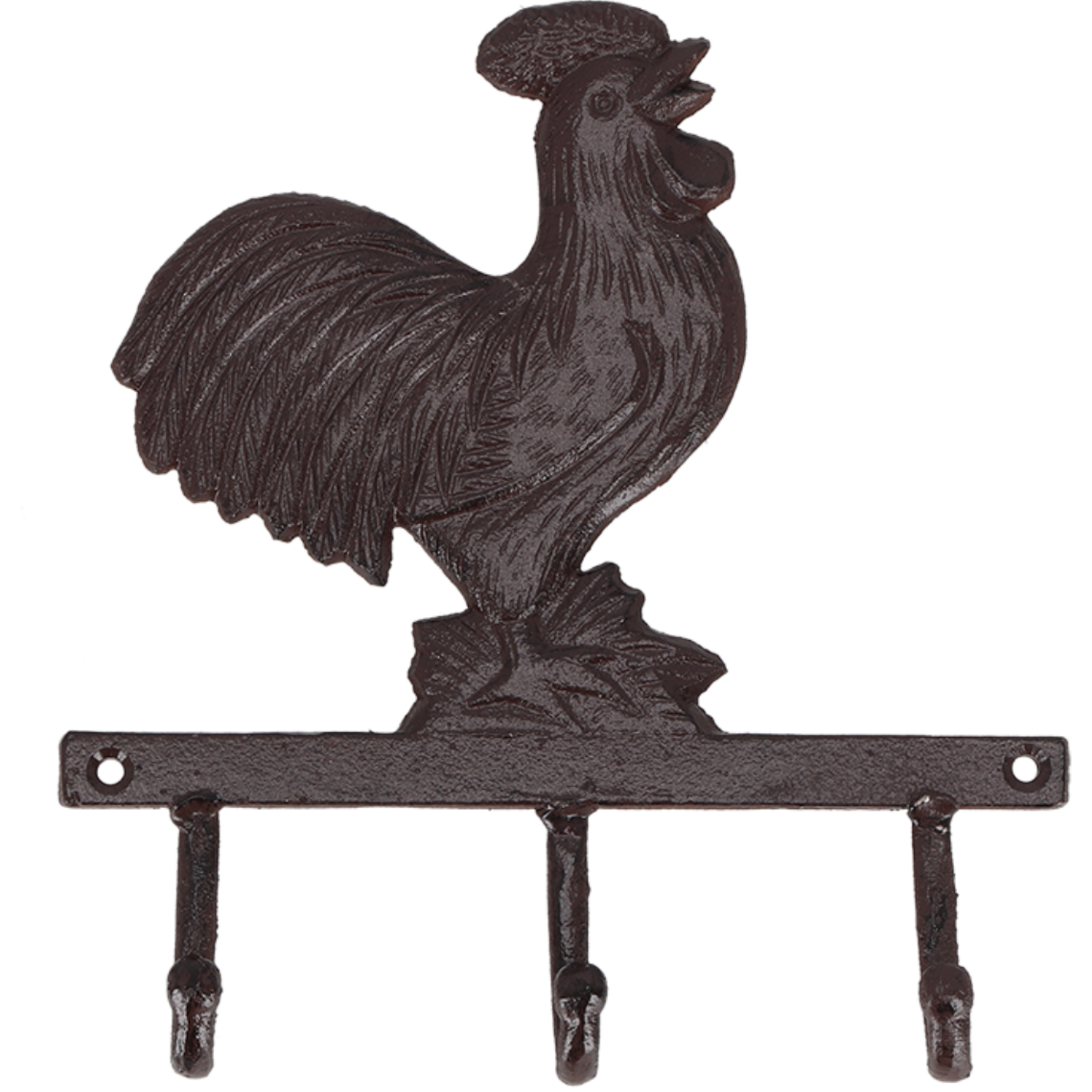 Kleiderhaken im Hahn-Design aus massivem Gusseisen. Bietet ausreichend Platz für Jacken, Schürzen oder Hundeleinen und setzt charmante Akzente in Landhäusern oder Hofläden.