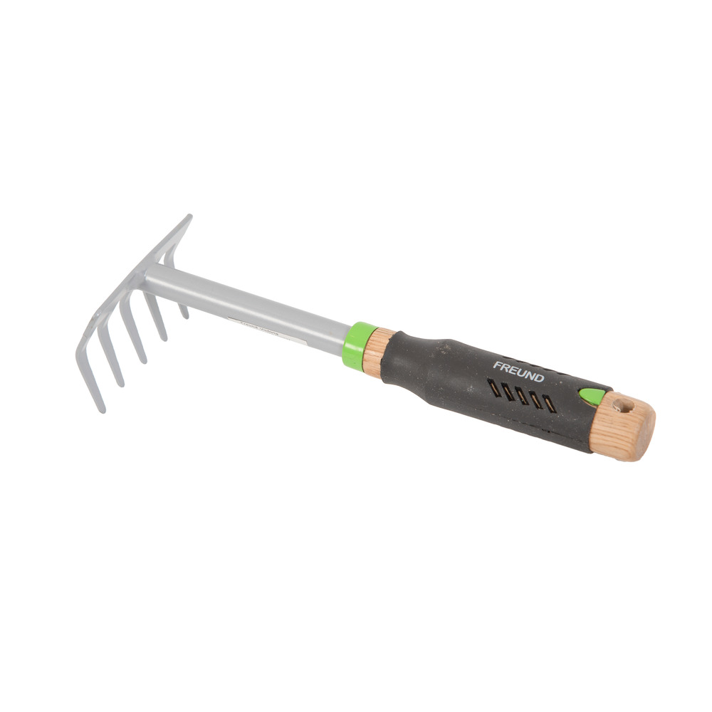 Der Kleinrechen von Freund ist aus hochwertigem Stahl und pulverbeschichtet, hat einen Eichenholzgriff und 5 Zinken - Gesamtlänge 30 cm. Bestens geeignet zum Arbeiten im Hochbeet, am Balkon oder für die Grabpflege.