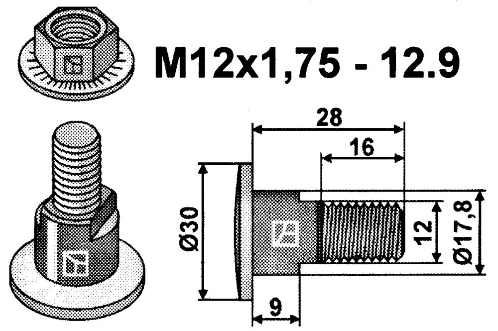Klingenbolzen zu Scheibenmähwerk komplett mit Mutter (mit beweglicher Scheibe)