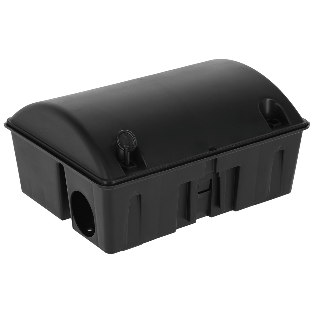 Köderstation für Ratten aus robustem Kunststoff. Sie können die Köderstation mit einem Schlüssel verriegeln, um Köder von Kindern und Haustieren sicher fernzuhalten.