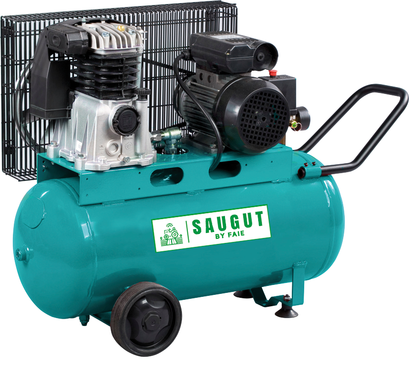 Der Kompressor hat ein Fassungsvermögen von 50 Litern und einen Motor mit einer Leistung von 1,5 kW / 2,0 PS. Er ist sofort einsatzbereit und wird mit einem Druckschalter und einem Druckminderer geliefert.