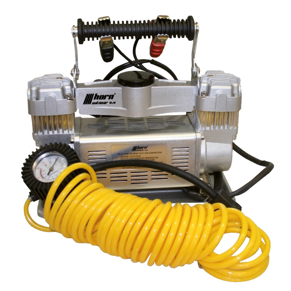 Transportabler Kompressor für den raschen Einsatz vor Ort. Gewicht nur 5,9 kg, durch 2-Zylinder max. 150 L/min Luftleistung. Höchstdruck 8 bar, Stromverbrauch max. 45 A. Komplett mit 2,4 m Anschlusskabel samt Batterieklemmen, Druckschlauch mit Manometer und praktischer Transporttasche.