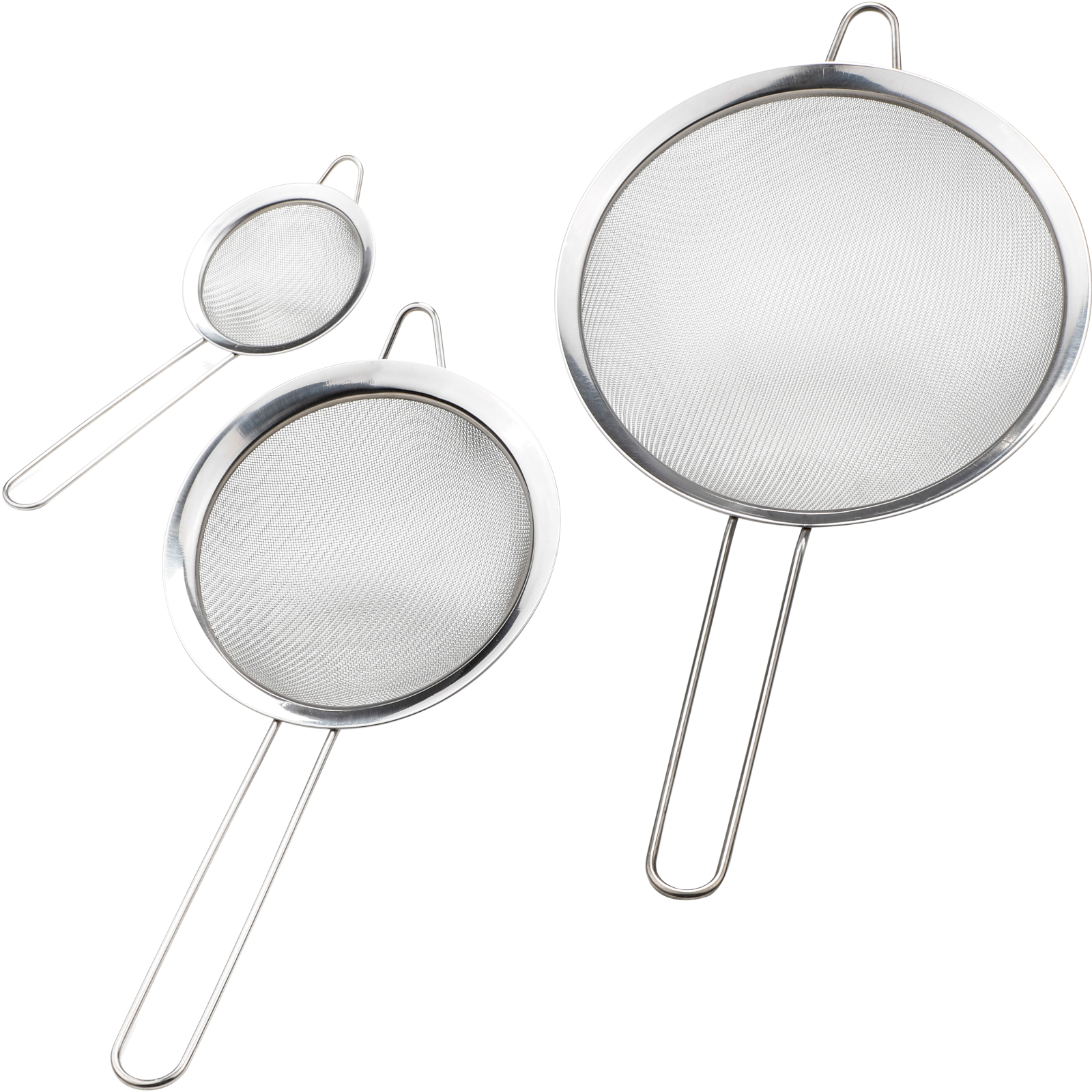 Das 3-teilige Küchensieb-Set braucht jede Küche.Es besteht aus drei unterschiedlich großen Sieben, ideal zum Abseihen, Waschen und Abtropfen von Obst, Gemüse, Nudeln und mehr.Die feinmaschigen Siebe sorgen für schnelle und gründliche Ergebnisse, während die robusten Griffe für eine einfache Handhabung sorgen.Platzsparend ineinander stapelbar, passt das Set in jede Schublade oder Küchenschrank.Dieses Sieb-Set erleichtert die Küchenarbeit und ist vielseitig einsetzbar.Durchmesser: 8/14/20cm.Material: Edelstahl