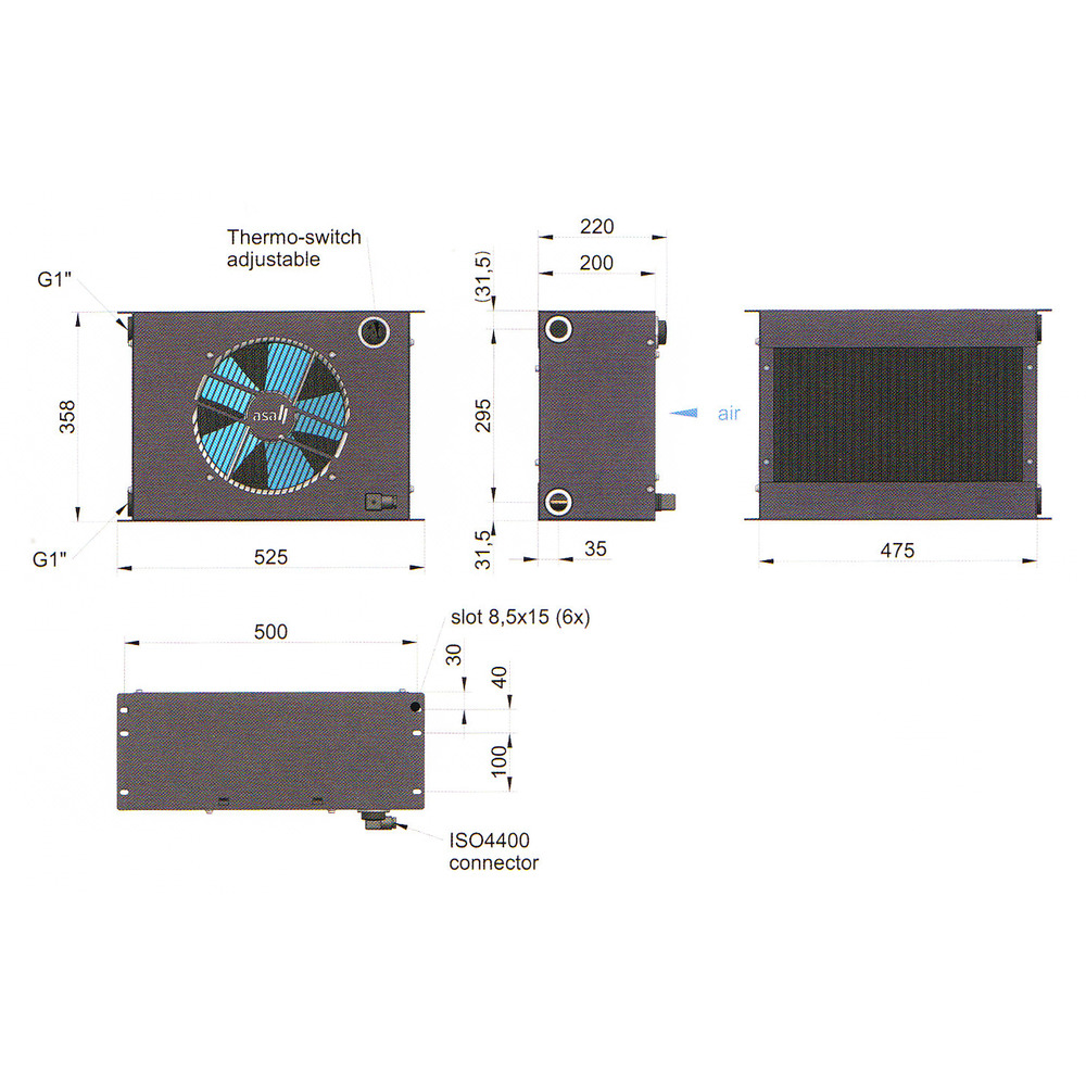 Die Kühlstationen der AS Serie sind universell einsetzbare Kühler. Durch die kompakten Außenabmessungen im black-box Design sind die Kühlstationen vielseitig anwendbar und für beengte Platzverhältnisse bestens geeignet. Der kompakte AC Lüfterantrieb wurde hinsichtlich Luftdurchsatz und verbessertem Luftstrom entwickelt. Das einstellbare Thermostat rundet das Gesamtkonzept für einen vielseitigen Einsatz bei stationären Hydraulikantrieben ab.Besonders geeignet für die Nachrüstung bei Heukränen, Entmistungsanlagen und stationären Hydraulikaggregaten.