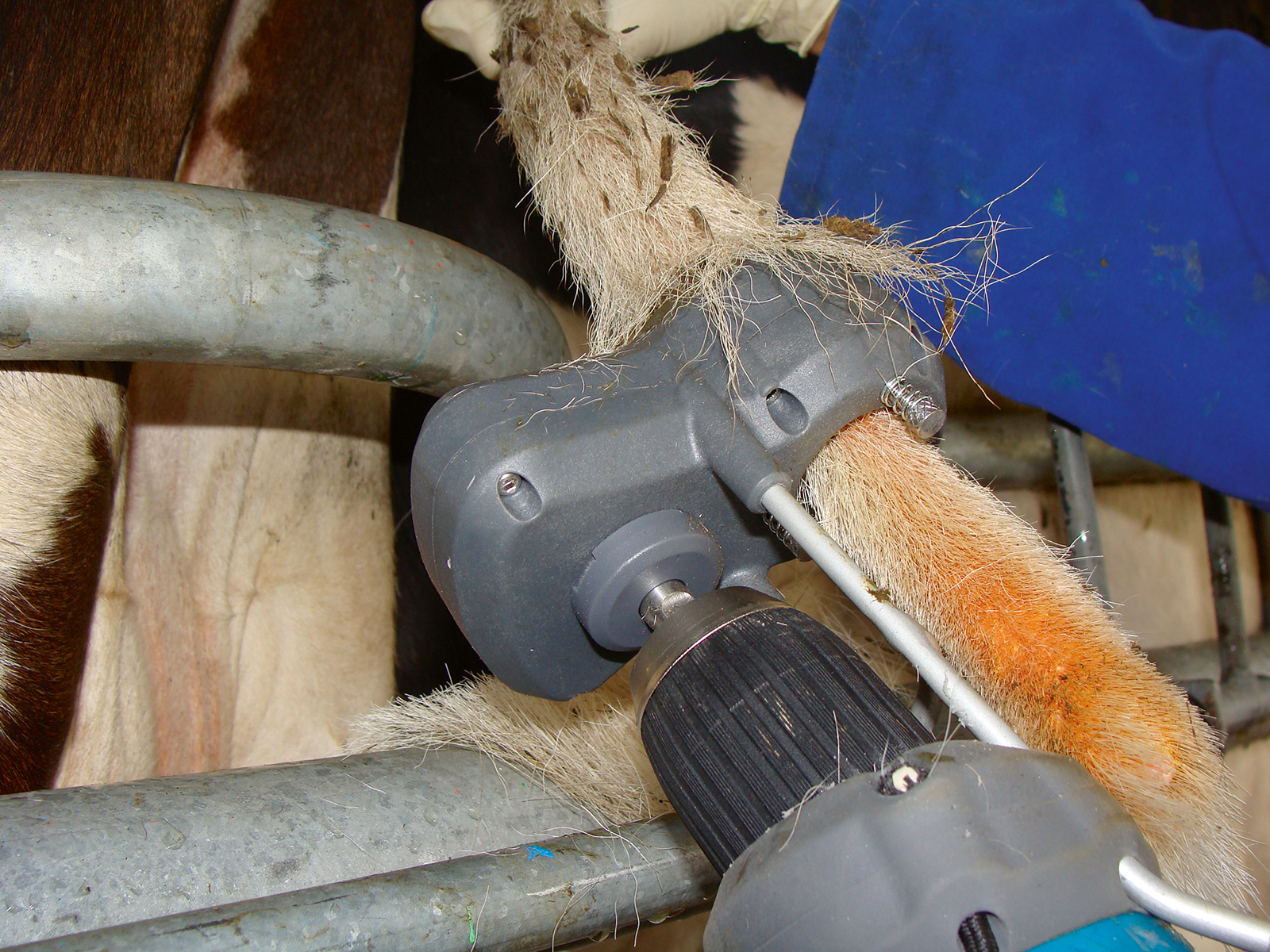zweiMal jährliches Entfernen der mit Kot und Urin kontaminierten Kuhschwanzhaare ermöglicht optimale Hygiene des Viehbestandes, der Milch und des Melkers