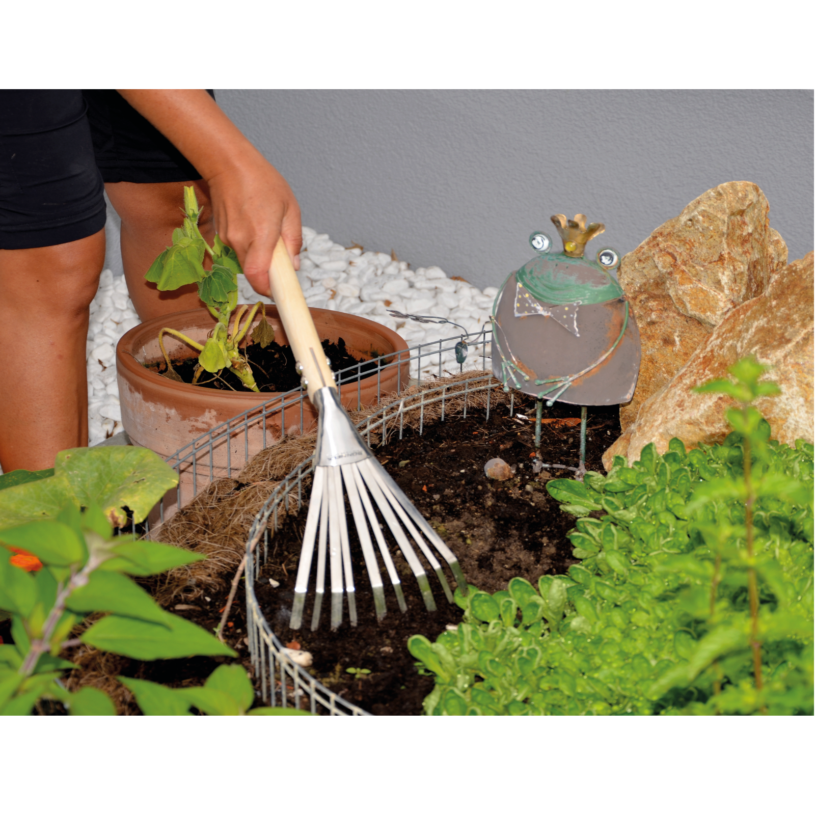 Die hochwertige Ausführung garantiert lange Haltbarkeit. Die große Reichweite des Werkzeuges ermöglicht rückenschonendes Arbeiten am Hochbeet und im Kleinbeet.