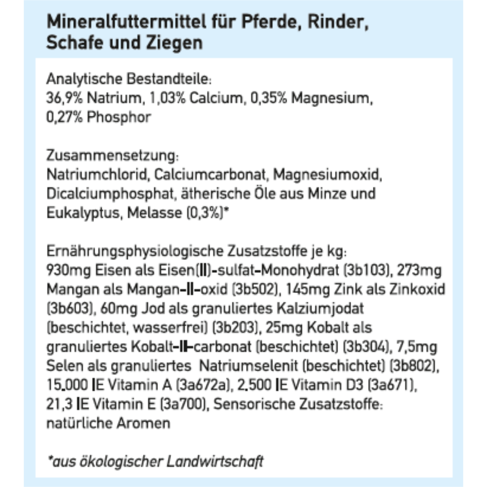 Mineralfuttermittel geeignet für Pferde, Rinder, Schafe und Ziegen.