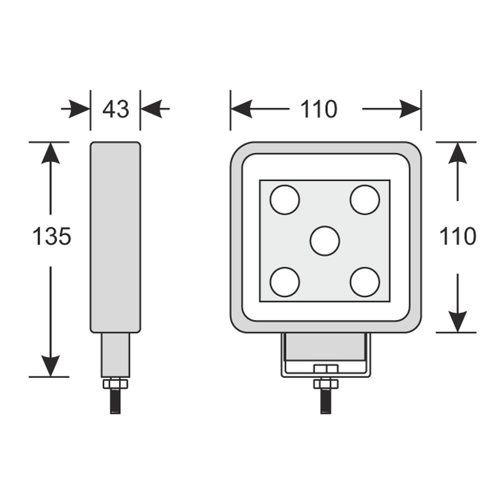 1200 Lumen, IP 67. Kompakter, flacher LED Arbeitsscheinwerfer mit Aluminiumdruckguss-Gehäuse 110x110x40 mm und 250 mm Kabel. 5 LED mit 15W Leistungsaufnahme, 9-30 Volt. Rein weißes Licht mit 6000K Farbtemperatur.LED Scheinwerfer sind wartungsfrei. Die Lichttemperatur von 6000 Kelvin entspricht fast dem Tageslicht und entspannt das Auge bei der Arbeit. Dadurch bleibt man länger fit. Vorteile der LED Lichttechnik:sehr gute Lichtwartungsfreivibrationsfestniedrige Temperatur an der Scheibe (lauwarm, vereist dennoch nicht)sehr lange Lebensdauer bis 30.000 Stundenstaub- und wasserdichtniedriger Stromverbrauch, lediglich 25% einer Glühlampe
