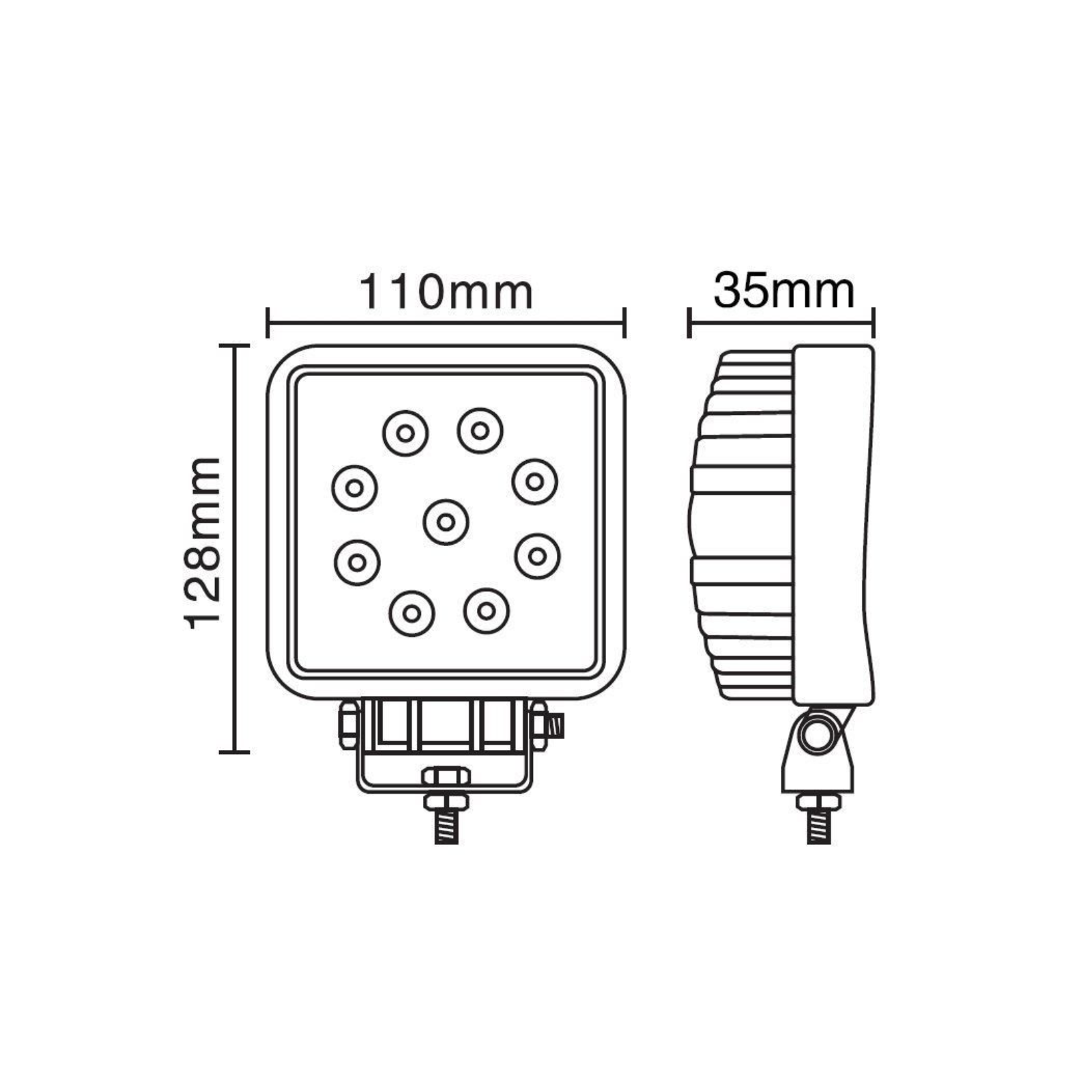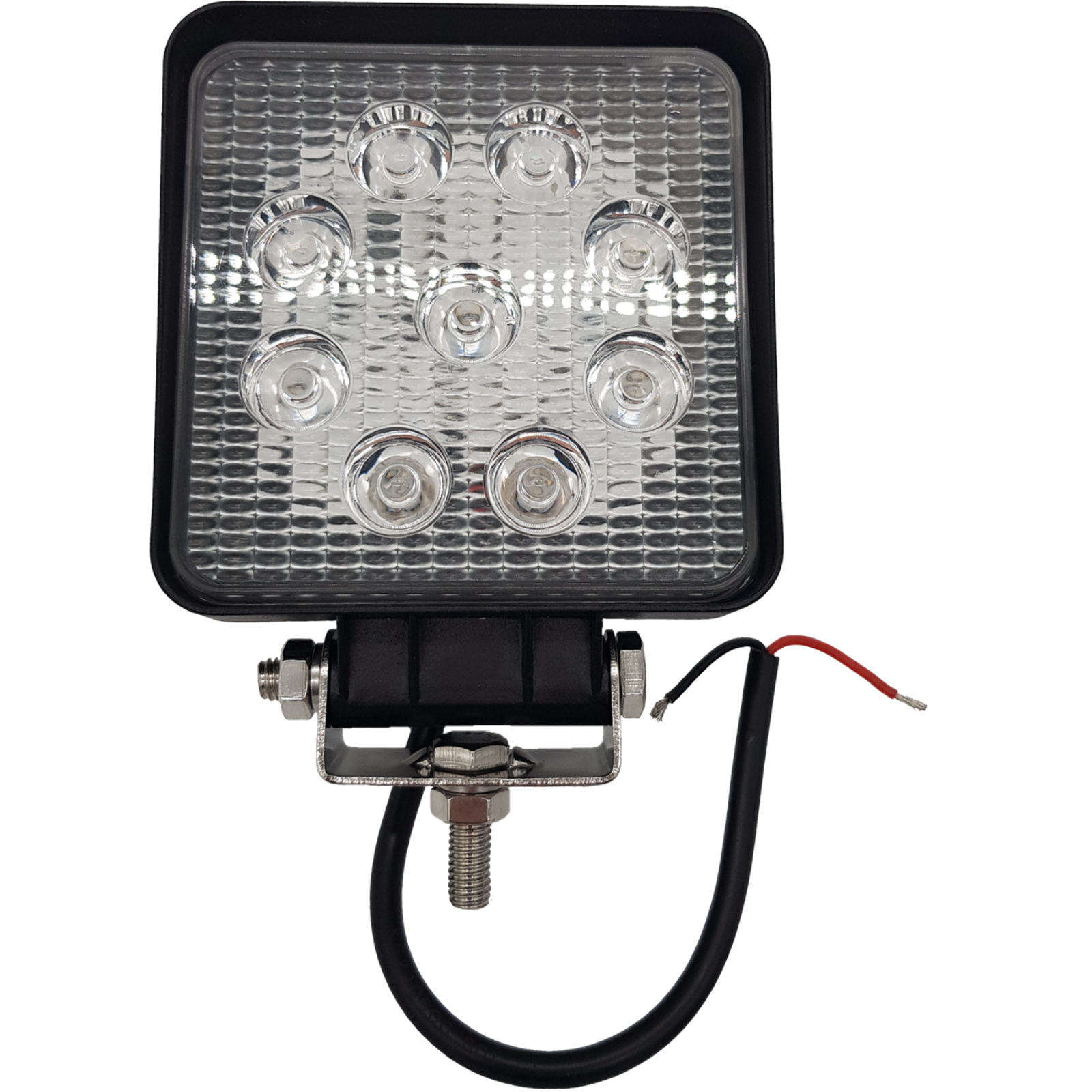 20346 LED blue Arbeitsscheinwerfer eckig, 9x3 W, ca. 2700 LumenGehäuse Aluminium, Glas PolycarbonatTechnische Details:Leuchtmittel: 9 x Hochleistungs-LED blue / blauLeistung: 27 Watt (9 x 3Watt)Spannung: 10-30 VoltSchutzklasse: IP67Abmessungen (BxHxT): ca. 110 x 110 x 63 mmLebensdauer: ca. 30.000 StundenNahbereichsstreulinse 60° (kurz und breitEinsatz:Das blaue Licht ist besonders für den Einsatz an Spritzen / Sprayern, Streufahrzeugen oder Winterdiensten geeignet.Das blaue Licht welches eine reduzierte Blendung bewirkt und die Kontrastwahrnehmung bei Dunkelheit und damit die Arbeitsüberwachung deutlich verbessert.