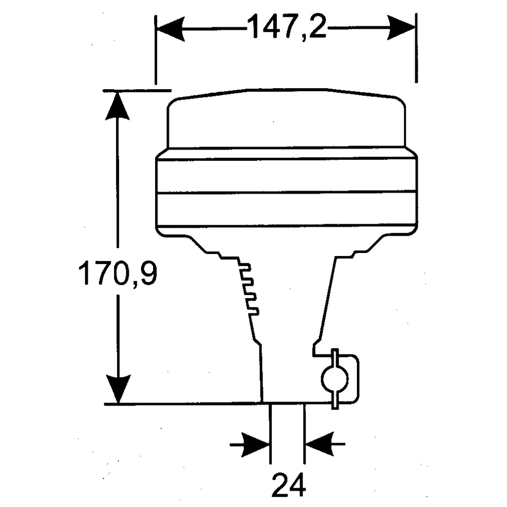 10-30 V Betriebsspannung, Lichthaube aus klarem Polykarbonat, 10 Hochleistungs-LED in orange, R65, E-Zulassung, IP67, EMC10 Lichtbilder: Dauerlicht, Einzel-, Doppel- und Dreifachblitz, schnell und langsam: Drehen, Blinken, Wechselblinken,Ø 147 mm, Höhe 171 mm, Betriebstemperatur -40°C bis +65°C, Stromaufnahme von 14-28 Watt (abhängig von der Blitzfrequenz)