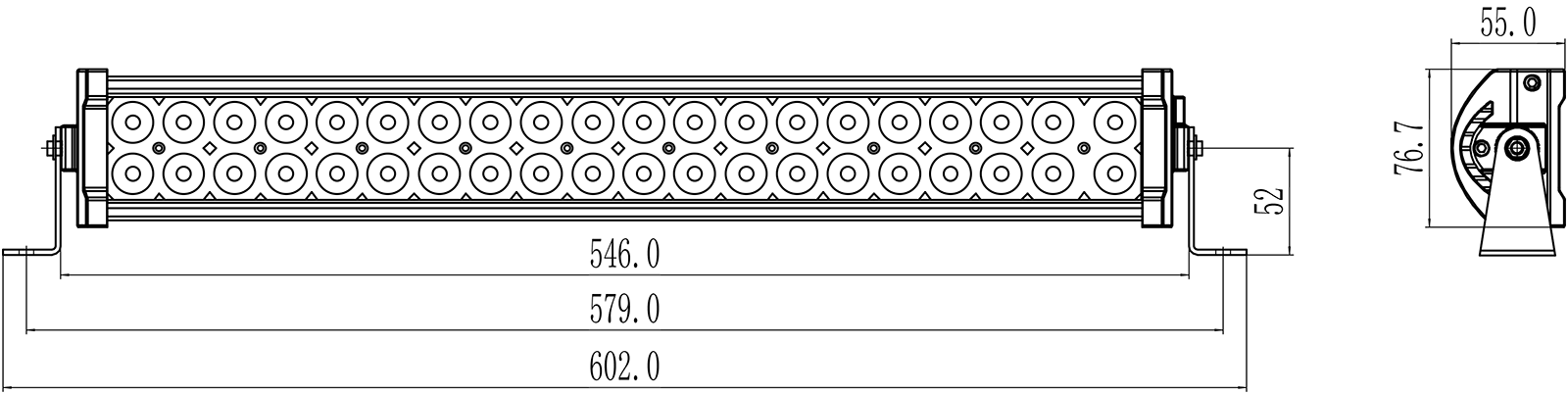 Gesamtlänge von 600 mm