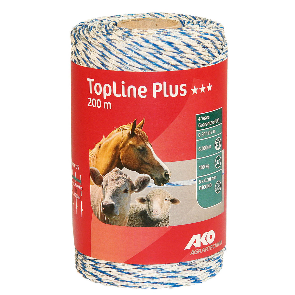 TopLine PLUS garantiert hervorragende Leitfähigkeit und sehr lange Haltbarkeit bei mittleren bis langen Zaunanlagen. Im Vergleich zu nicht rostenden Drähten gleicher Stärke besitzt die Litze durch Verwendung des neuen Leitermaterial TriCOND, eine 5 x höhere Leitfähigkeit, d.h. mit TriCOND können Sie 5 x längere Zäune betreiben bzw. transportieren 5 x mehr Strom zum Ort der Tierberührung = 5 x mehr Sicherheit4 Jahre Garantie auf UV-StabilitätFarbe: weiß/blauTriCOND-Leiterdrähte wurden über die letzten Jahre intensiv getestet und bestechen durch sehr lange Haltbarkeit. Der geringe Widerstand von TriCOND-Drähten und die damit verbundene hohe Hütewirkung resultieren in einem exzellenten Preis-Leistungs-Verhältnis.