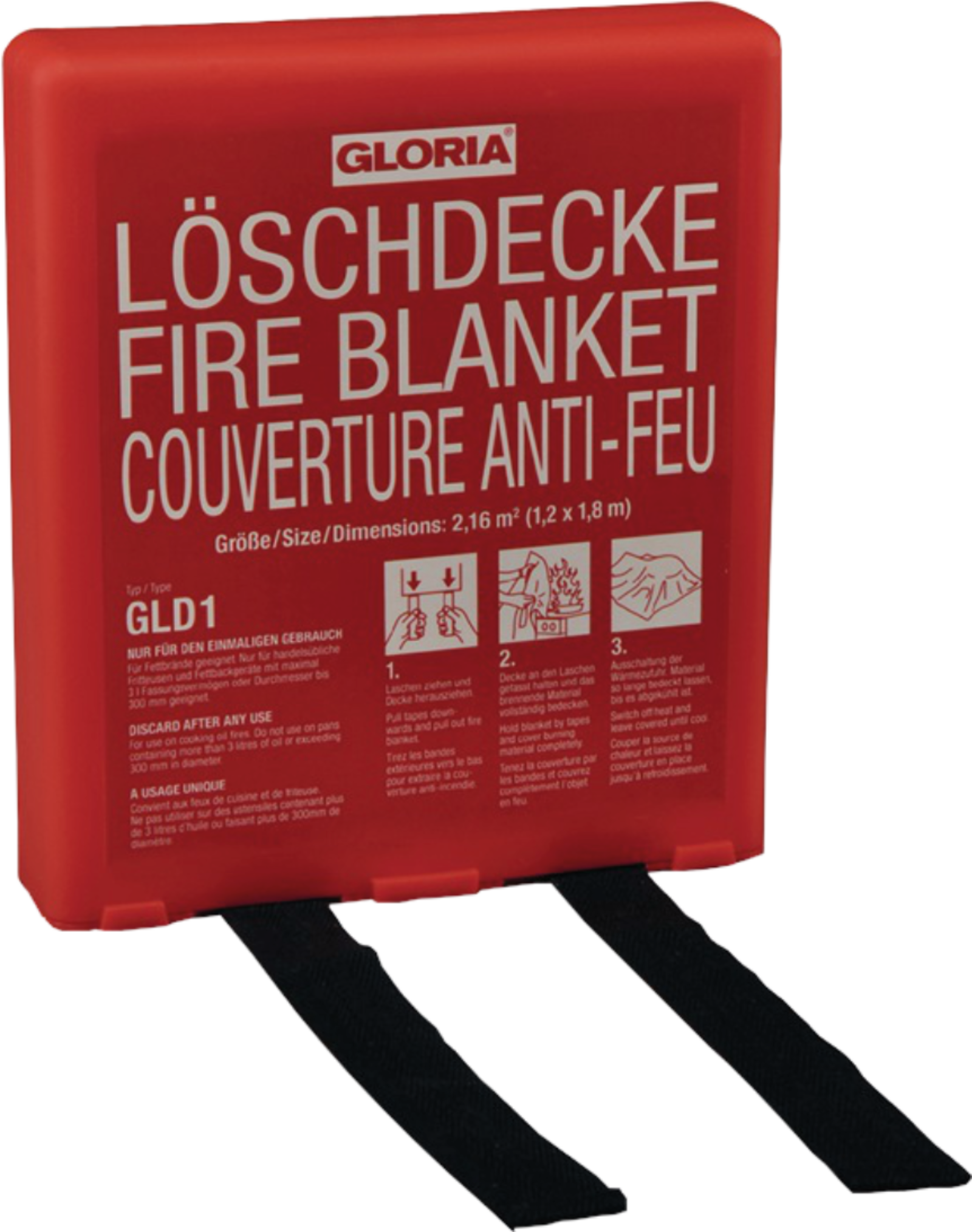 Löschdecke nach DIN EN 1869:2001 zum raschen Löschen von Bränden z.b. bei Fritteusen, Fettbrändenaber auch bei Entstehungsbrände bei Fahrzeugen oder in der Werkstatt.Griffbereite Aufbewahrung in einer Hardbox 205 x 175 x 48 mm L x B x T.