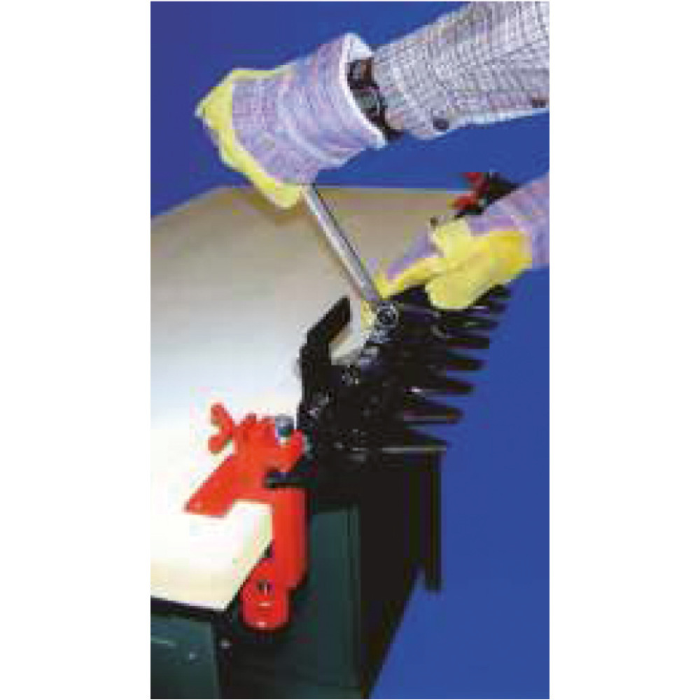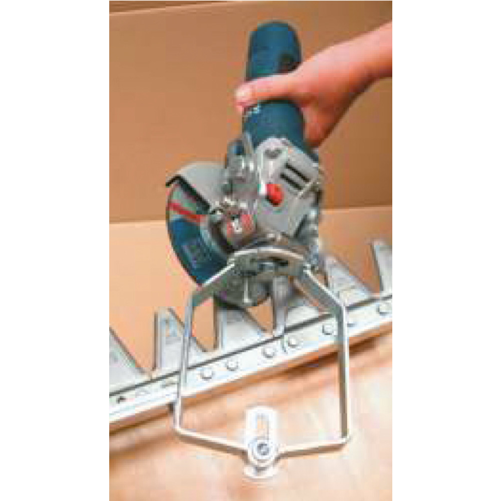Jetzt mit universal verwendbarem Schleifvorsatz für handelsübliche Winkelschleifer mit Schleifscheibendurchmesser 125 mm. Funktion und einfachste Handhabung bestimmen das Konzept der ESM Service-Station. Alle ESM Messertypen können mit einem Klingenschneidenwinkel bis 40° exakt geschärft werden. Die in allen Ebenen einstellbare Aufnahme des Schleifvorsatzes ermöglicht die Adaption an Winkelgetrieben von Winkelschleifern unterschiedlichster Hersteller.Als Zusatzproduktnutzen bietet die ESM Service-Station die Möglichkeit der Aufnahme von ESM-Mähbalken, um Wartungsarbeiten daran durchführen zu können.Die ESM Service-Station besteht aus zwei Spannvorrichtungen, dem Mähmesserschleifvorsatz für Winkelschleifer mit Schleifscheibendurchmesser 125 mm, und einer Führungsschiene. Auf jeder handelsüblichen Werkbank lassen sich die Komponenten unproblematisch und schnell fixieren. Bei dauerhafter Verwendung wird die geschraubte Befestigung der Spannvorrichtungen über deren zusätzliche Auflageplatten zur Tischauflage empfohlen.Der Schleifvorsatz wird auf die baulichen Gegebenheiten des jeweilig verfügbaren Winkelschleifers justiert, nachdem der Handgriff des Winkelschleifers abgeschraubt wurde. Dabei ist die Anpassung des Vorsatzes in Höhe, Breite, Tiefe sowie Winkel möglich.Das Mähmesser wird in der Spannvorrichtung durch zwei Schrauben gesichert, der Winkelschleifer mit Vorsatz auf die Führungsschiene aufgelegt und durch Vor- und Zurückbewegung mit seiner Schleifscheibe an der Klingenschneide entlang geführt.Die Winkeleinstellung im Gelenkpunkt des Schleifvorsatzes sichert einen wiederholgenauen, winkeltreuen Schliff der Klingen und somit eine optimale Klingenschärfe.Lieferumfang: 2 Spannvorrichtungen, 1 Führungsschiene, 1 Mähmesserschleifvorsatz für Winkelschleifer mit Schleifscheibendurchmesser 125 mm