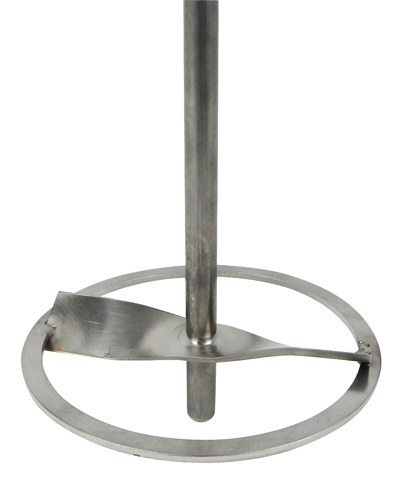 zum Rühren und Zerkleinern von Obstmaischen mit Bohrmaschinen und Rührwerken.Die Vorderseiten des Rührflügels sind scharf geschliffen, um das Obst zu zerkleinern.Die Kerne werden dabei nicht beschädigt!Zum Schutz der Behälter ist der Rührflügel mit einem Schleifring versehen und die Welle steht nach unten vor.Länge: 97 cmRührflügel: Ø 14 cm