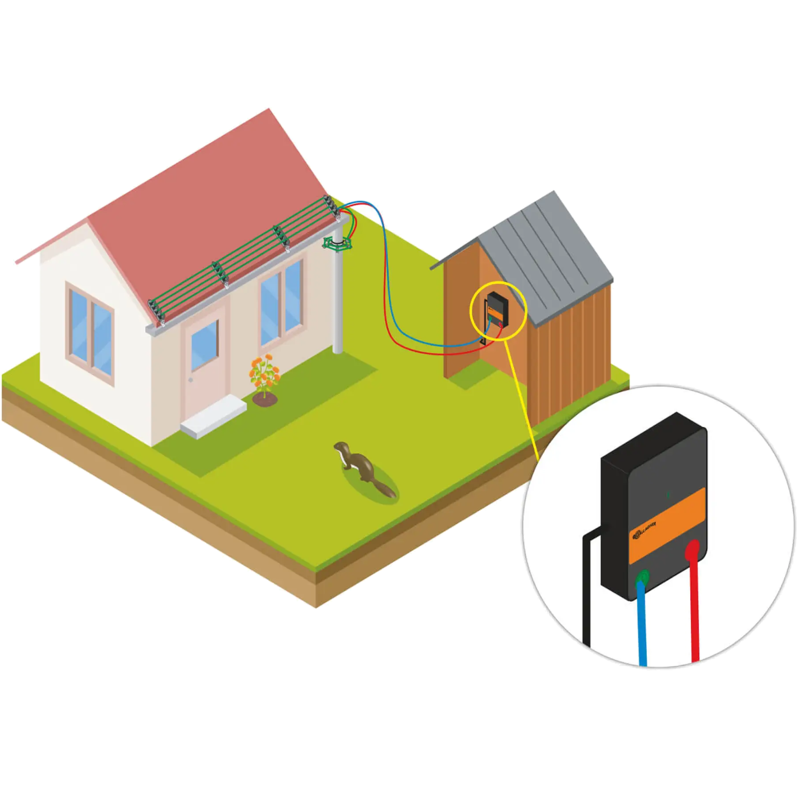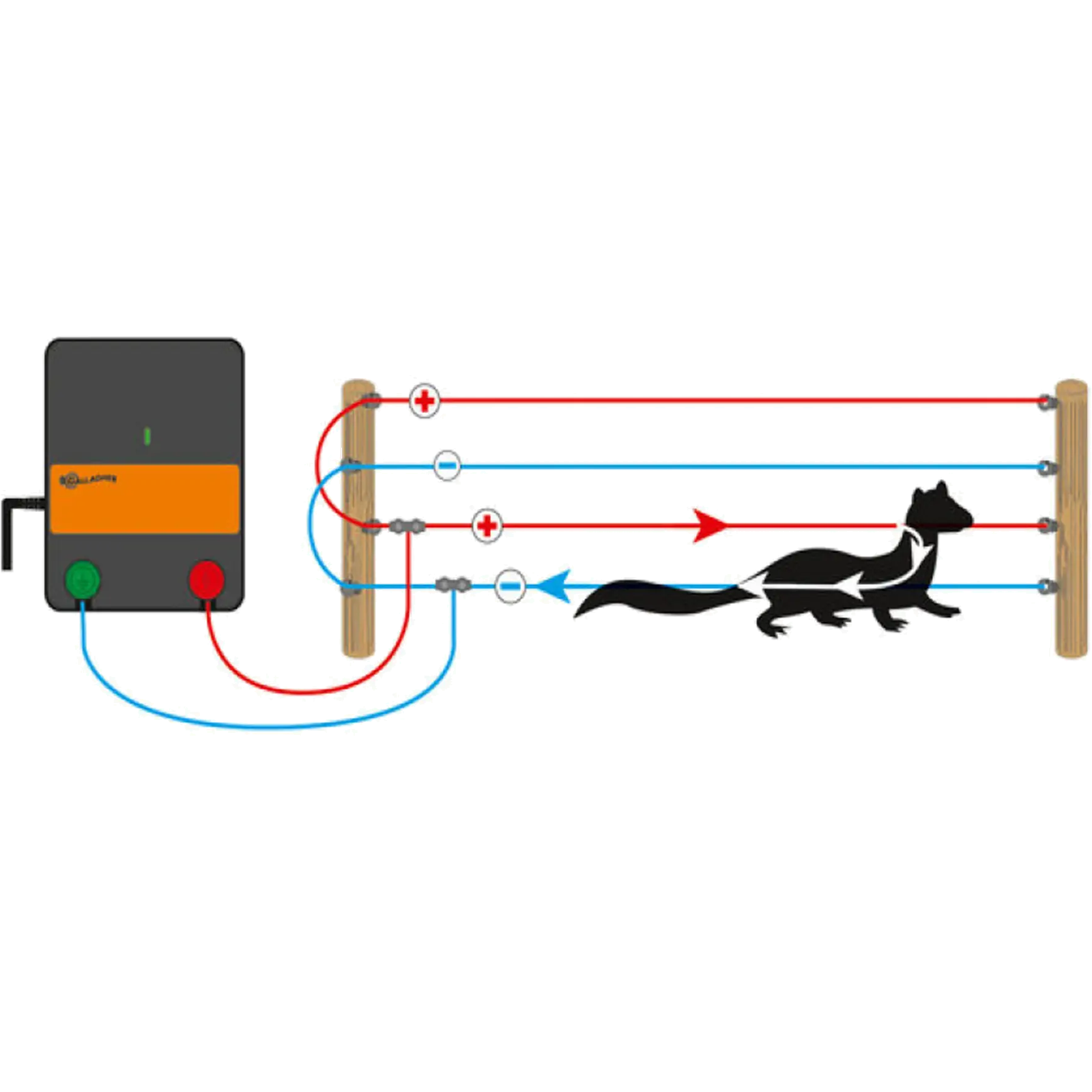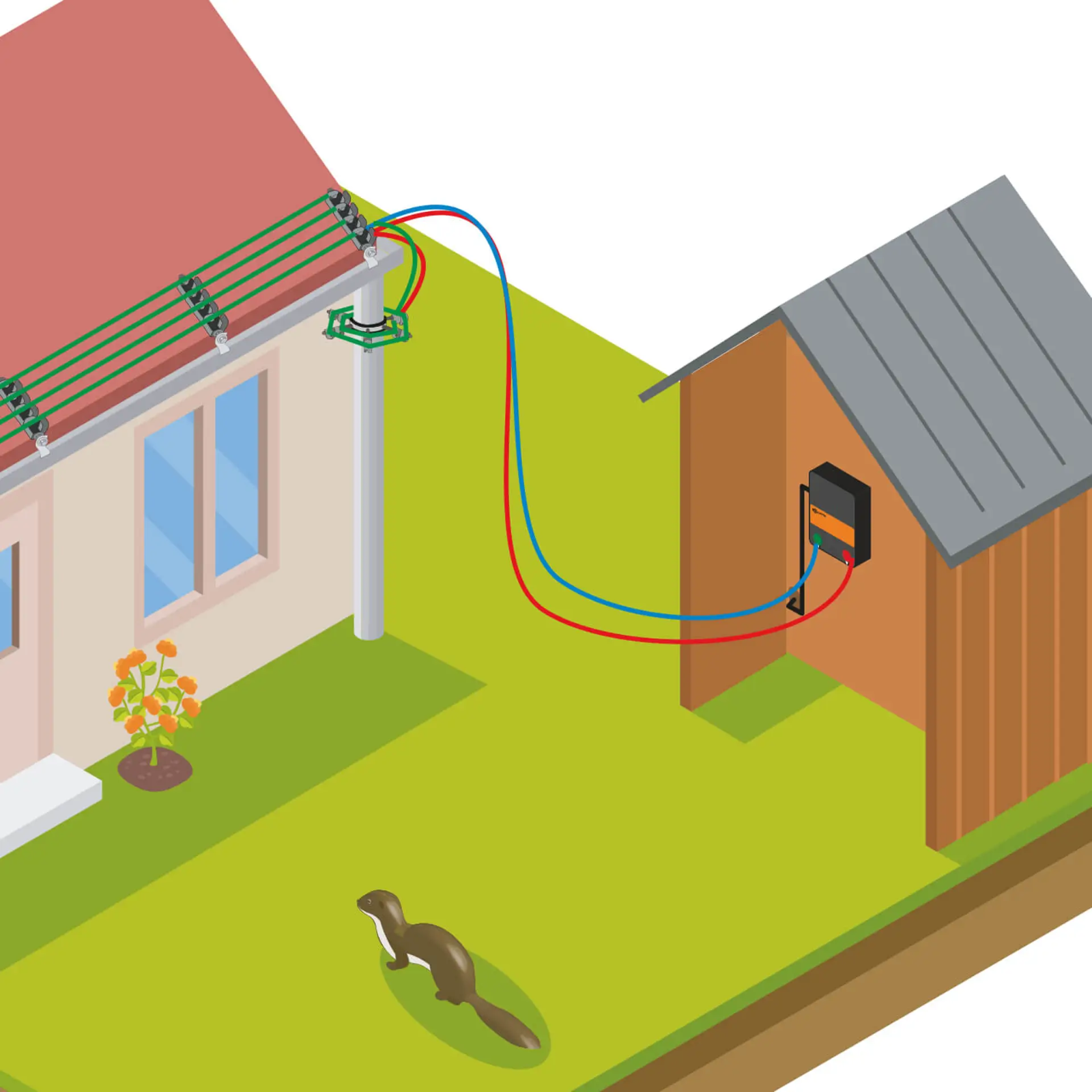 Basisset zum Schutz vor Mardern oder Waschbären auf Dachböden.Mit einem guten Elektrozaun wird es Marder oder Waschbär erschwert in den Dachboden einzudringen und teils schwere Schäden zu verursachen.(Anleitung und Details siehe Downloads)Set bestehend aus:Weidezaungerät M50 230 V200 m Litze (Farbe terra)1 Regenrohrschelle inkl. Isolatoren10 Dachrinnenisolatoren6 Drahtverbinder1 Anschluss-Set1 Warnschild1 Montage-SetAnleitung