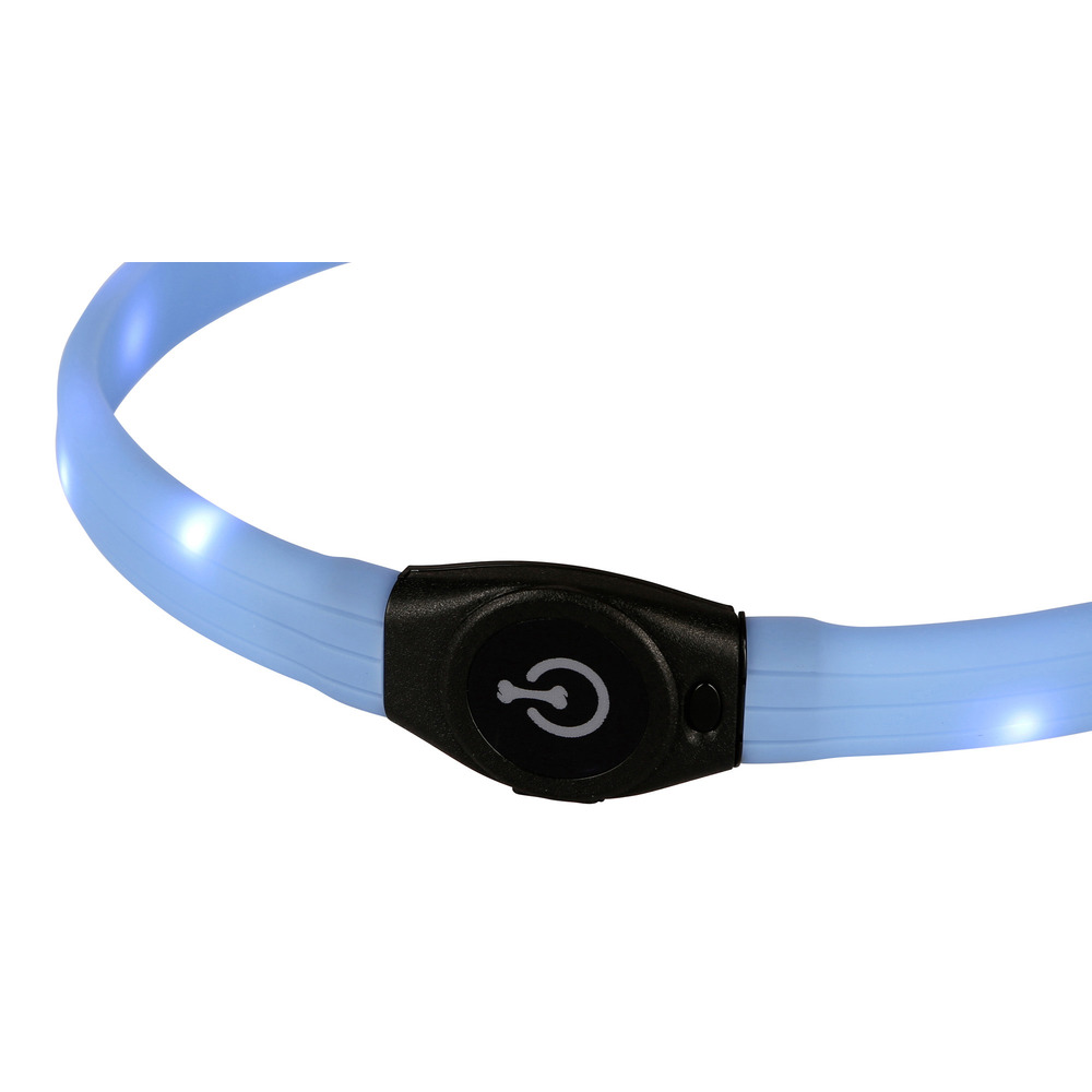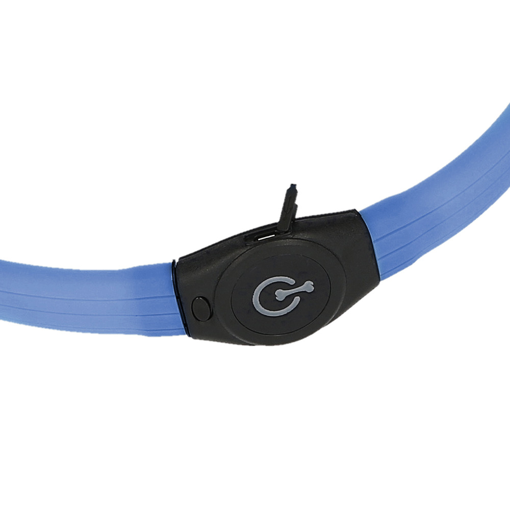 Vor allem gut geeignet für Langhaarhunde, Breite 1,5 cm. Aus 2 Blinkstufen oder Dauerlicht wählbar, aufladbarer Akku über USB-Kabel (Lieferung inkl. USB Kabel). Wasserfest, bis zu 500 m sichtbar, individuell kürzbar, max. Halsumfang 65 cm. In blau oder grün erhältlich.