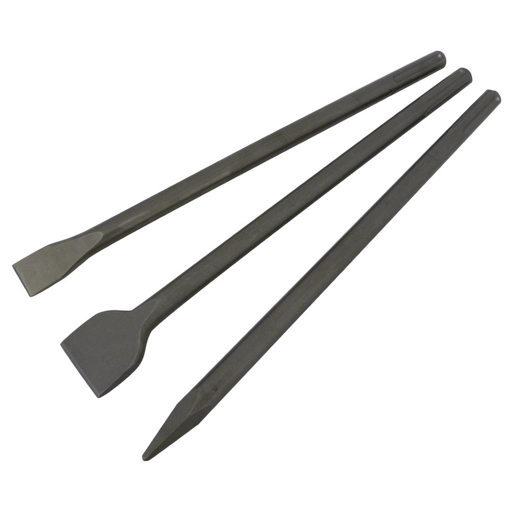 Inhalt: Flachmeißel 25x400 und 50x400 mm und Spitzmeißel 400 mm.