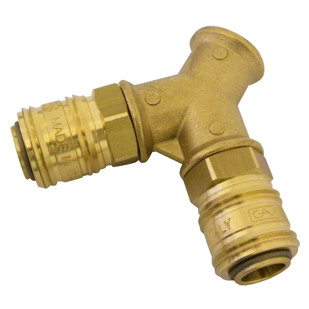 Y-Stück mit 3 x 3/8″IG, komplett mit 2 Schnellkupplungen.