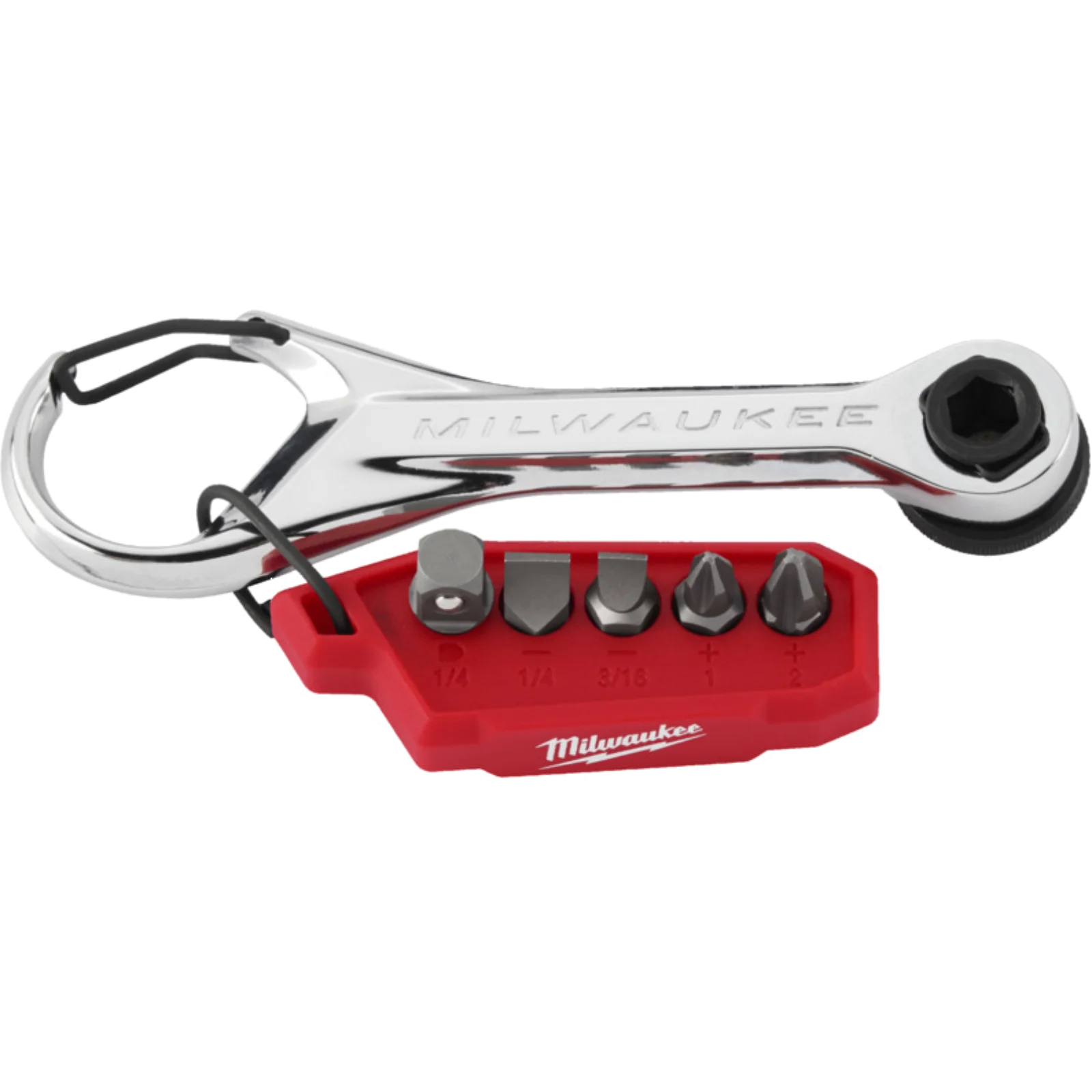 Mico-Ratsche mit 90-Zahn-Design mit 4 ° Rückholwinkel für Flexibilität auch in beengten Platzverhältnissen. Mini-Bit PH1 / PH2 / SL 5,5 / TX15 für Zugang auch in engen Bauräumen. ¼˝ Adapter zur Aufnahme von ¼˝ Steckschlüsseleinsätzen. Vielseitiger Einsatz durch ¼˝ Steckschlüsseleinsatz auf der einen und 5/16˝ Steckschlüsseleinsatz auf der anderen Seite des Ratschenkopfes.