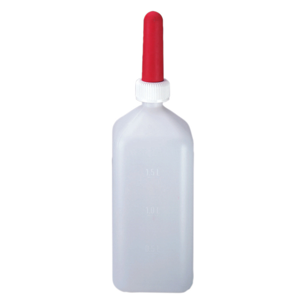 Kälber-Tränkeflasche mit Füllskala, zur Einzeltieraufzucht und für Medikamenteneingabe geeignet. Komplett mit Sauger!