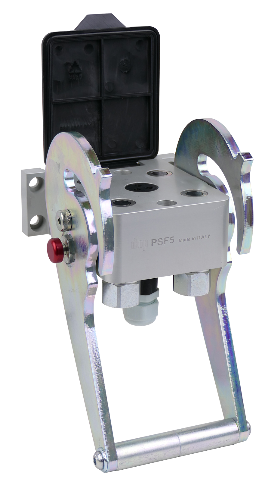 Die Multikupplung PSF von dnp wurde entwickelt um das Kuppeln unter Restdruck auf der Werkzeugseite zu ermöglichen. Die Kupplungsstecker erlauben das verbinden der Hydraulikleitungen bis zu einem Druck von 200bar! Die speziellen Dichtungen der Stecker sind für diese Anwendung ausgelegt.Die Verbindung der Hydraulikleitungen erfolgt über flachdichtende Kupplungselemente durch welche innerhalb kürzester Zeit mehrere Hydraulikleitungen miteinander verbunden oder getrennt werden. Dies geschieht mit einem Bedienhebel, dessen Führungskulisse so ausgelegt ist, dass die Bedienkräfte so gering wie notwendig gehalten werden.Die herausragenden Merkmale der Multikupplung sind die Verwechslungssicherheit der Anschlüsse, schnelle Verbindung, Kuppelbarkeit unter Restdruck sowie optimal minimierte Leckage während des Kuppelvorganges.Ein weiterer Vorteil ist die Austauschbarkeit mit der Faster Multikupplung P506. Es sind nicht nur die beiden Hälften des Multikupplers mit Faster P506 austauschbar sondern auch die Stecker und Muffen. Baugruppe 2/DN10Druck max. 250 barDurchfluss max. 46 l/minAnschluss R1/2″IG