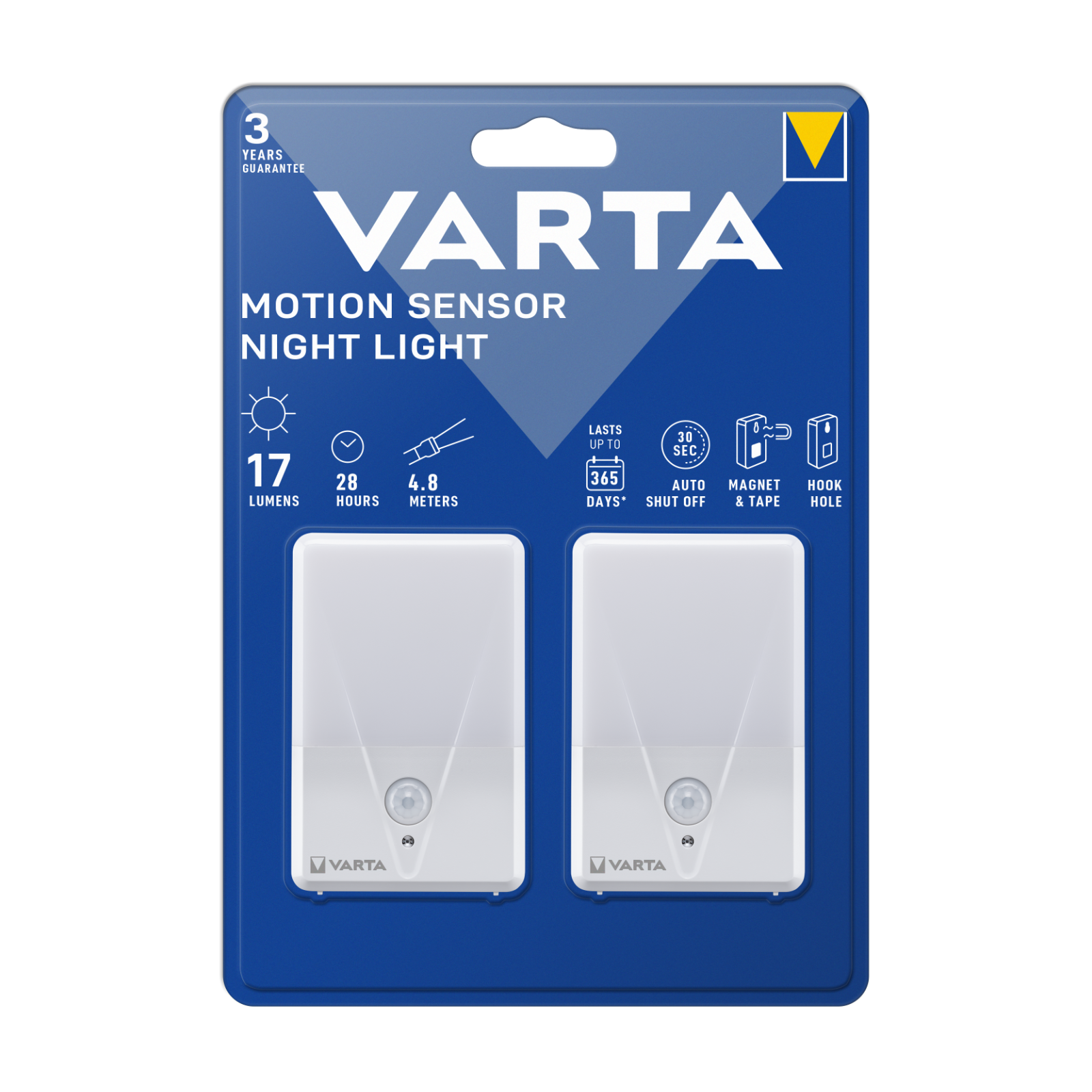Eigenschaften:Lumen:17 lm, Leuchtdauer:28 h, Reichweite:4,8 m, Anzahl der Leuchtstufen:2,VARTA Garantie 3 Jahre