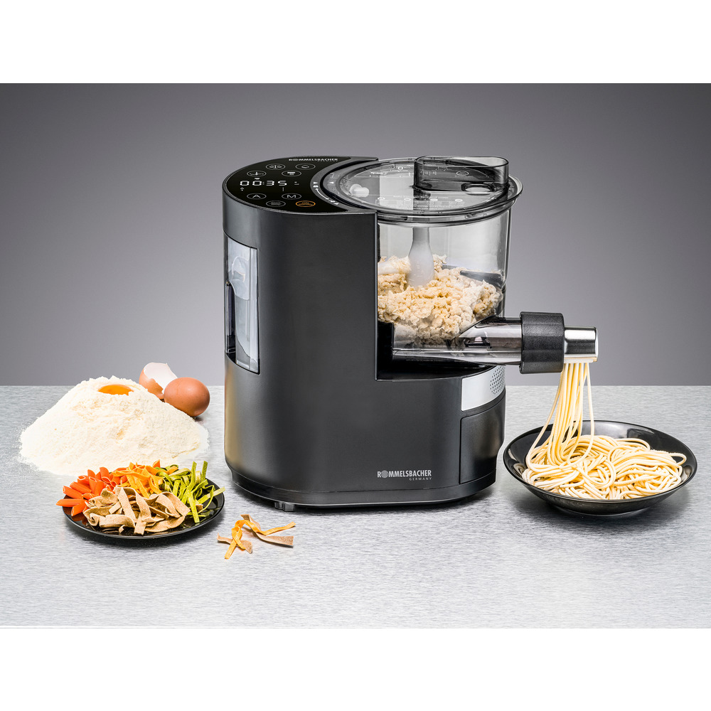 Die vollautomatische Nudelmaschine produziert eine große Auswahl an Nudelsorten und ermöglicht darüber hinaus die Zubereitung individueller Rezepturen aus Zutaten nach eigener Wahl. Ob vegan, glutenfrei, mit Ei oder Vollkorn - die elektronisch gesteuerte Nudelmaschine mit integrierter Waage und automatischer Wasserzufuhr schafft bis zu 800g Nudeln in einem Durchlauf.Produktinfos: