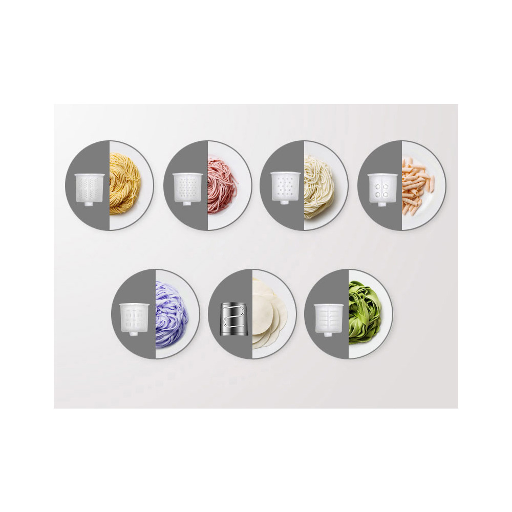 7 auswechselbare Nudelform-Einsätze, Aufbewahrung in integrierter Zubehörbox